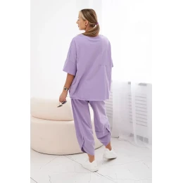 Bavlněný komplet halenka + kalhoty světle fialová