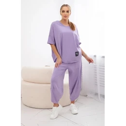 Bavlněný komplet halenka + kalhoty světle fialová
