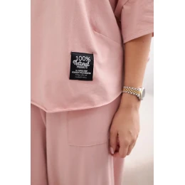 Bavlněný komplet halenka + kalhoty tmavě pudrově růžová