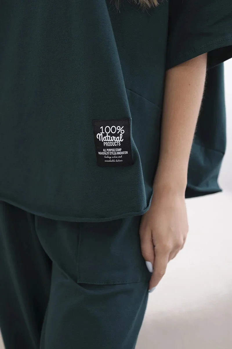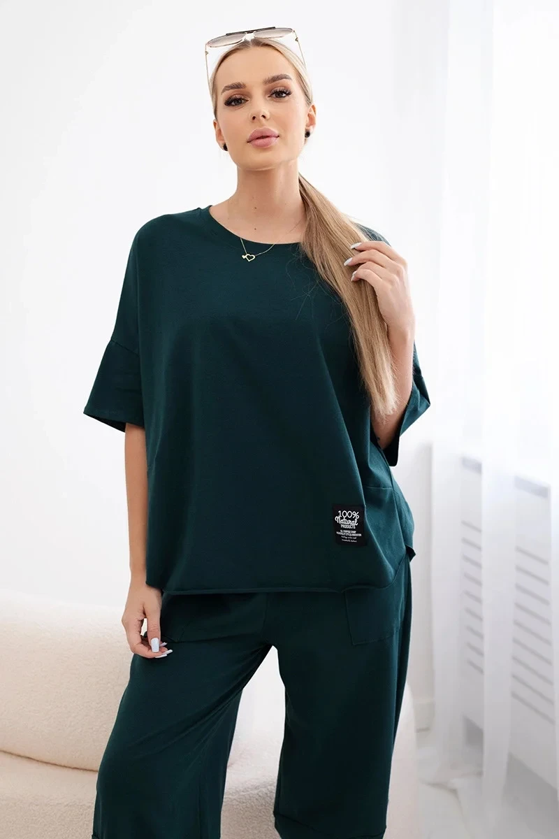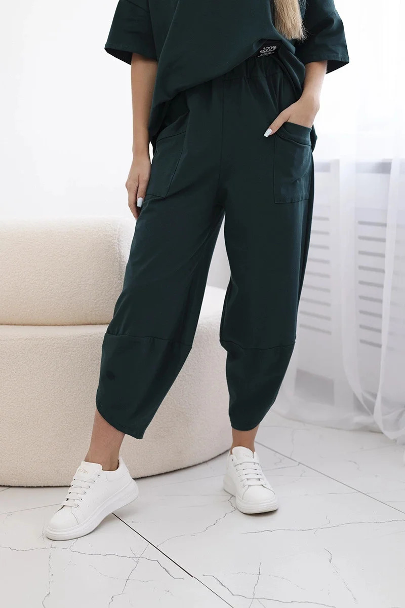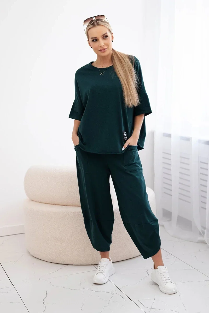 Bavlněný komplet halenka + kalhoty tmavě zelená