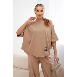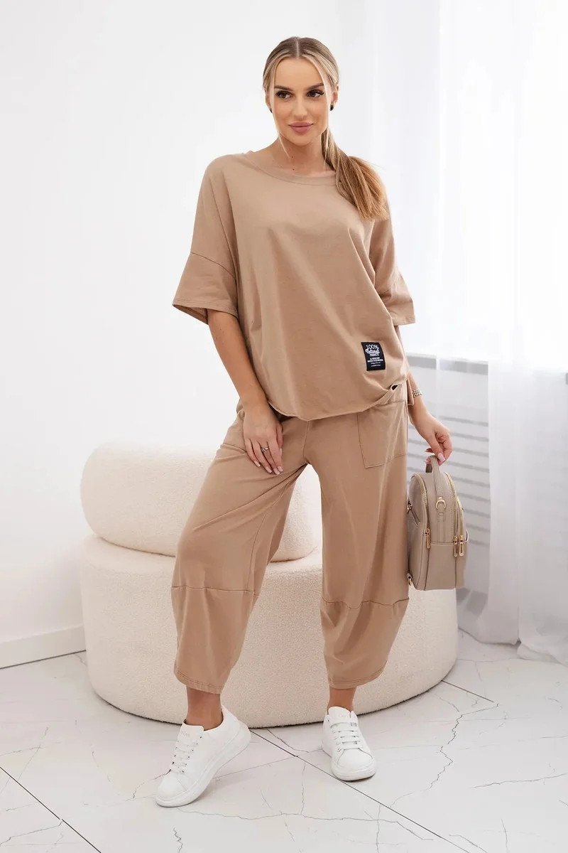 Bavlněný komplet halenka + kalhoty Velbloud