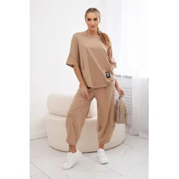 Bavlněný komplet halenka + kalhoty Velbloud