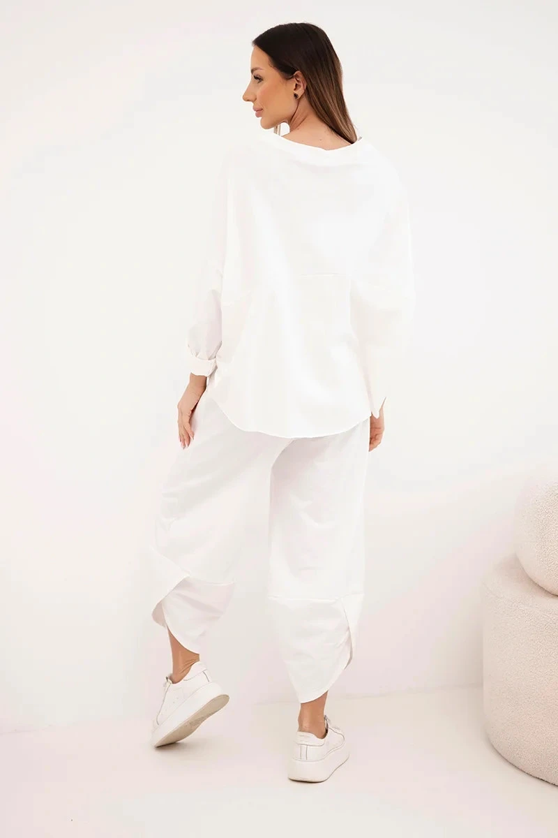 Italská souprava je kombinací elegance a pohodlí, která se hodí pro mnoho příležitostí. Tato látka je nejen měkká a příjemná na dotek, ale také krásně vypadá. Mikina je dokonalým kouskem oblečení jak pro každodenní nošení, tak pro speciální příležitosti. Můžete jej nosit samostatně nebo kombinovat s jiným kouskem oblečení a vytvořit tak mimořádně stylový outfit. Kalhoty jsou perfektním doplňkem soupravy. Jejich volný střih umožňuje volnost pohybu, díky čemuž jsou nejen stylové, ale také velmi pohodlné. Při výběru kalhot volíte pohodlí a eleganci v jednom. Italský set je vynikající volbou pro ty, kteří oceňují vysokou kvalitu a jedinečný styl. Ať už se chystáte na schůzku s přáteli, do práce nebo na večer, s touto sadou budete jistě vyčnívat z davu. Velikost je univerzální a padne ženám, které nosí velikost S, M nebo L.
