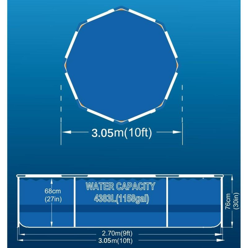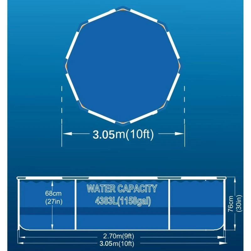 Seznamte se s oválným rámovým bazénem 300X76CM 17798, moderním, odolným a prostorným zahradním bazénem s působivým objemem 4383 l. Díky robustnímu ocelovému rámu, odolnému PVC a kompatibilitě s různými filtračními systémy poskytne komfort a bezpečné používání po mnoho sezón.