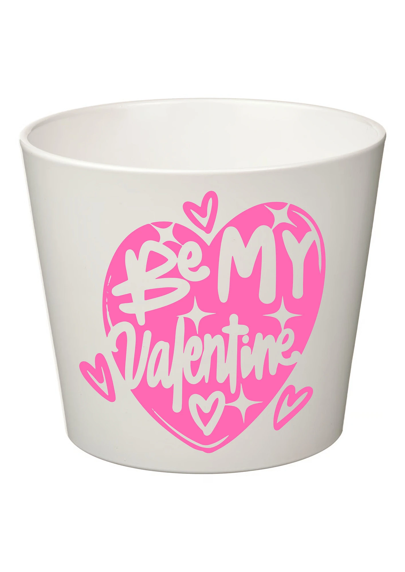 Elegantní bílý květináč s romantickým nápisem „BE MY VALENTINE“ je stylovým doplňkem do každého interiéru. Jednoduchý, ale výrazný motiv symbolizuje lásku, harmonii a pozitivní energii, díky čemuž se skvěle hodí nejen jako dekorace, ale i jako milý dárek pro někoho blízkého.