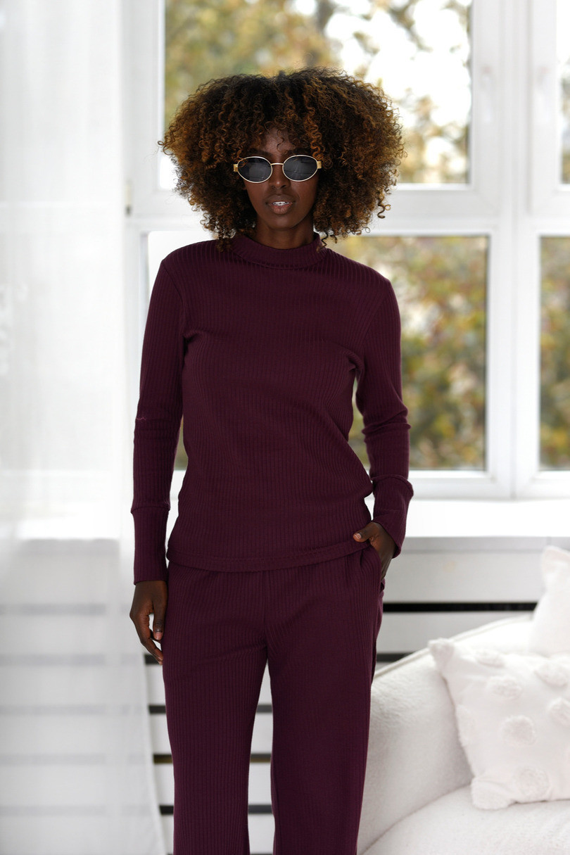 Dámská halenka s dlouhými rukávy a elegantní manžetou je klasikou v moderním pojetí. Je vyrobena z vysoce kvalitní žebrované bavlny s přídavkem elastanu (95 % bavlna, 5 % elastan), dokonale se přizpůsobí postavě a zajistí pohodlí a volnost pohybu. Jemný žebrovaný lem dodává halence jemnou eleganci, takže se skvěle hodí jak ke každodennímu, tak k formálnějšímu oblečení. Skvěle se hodí ke kalhotám, kalhotám i saku – univerzální součást šatníku každé ženy.