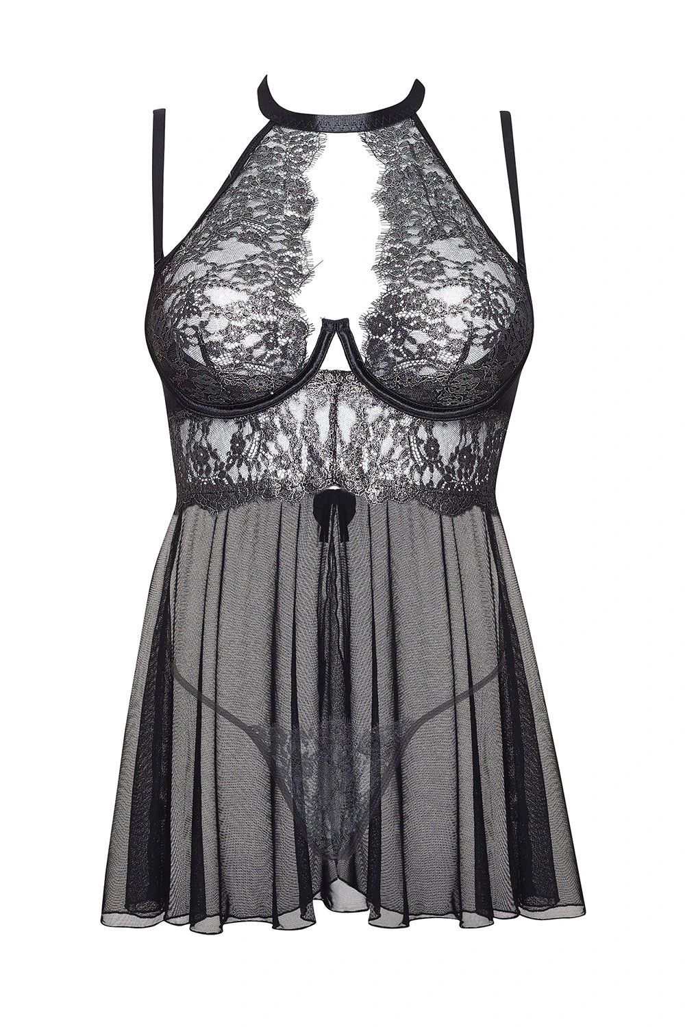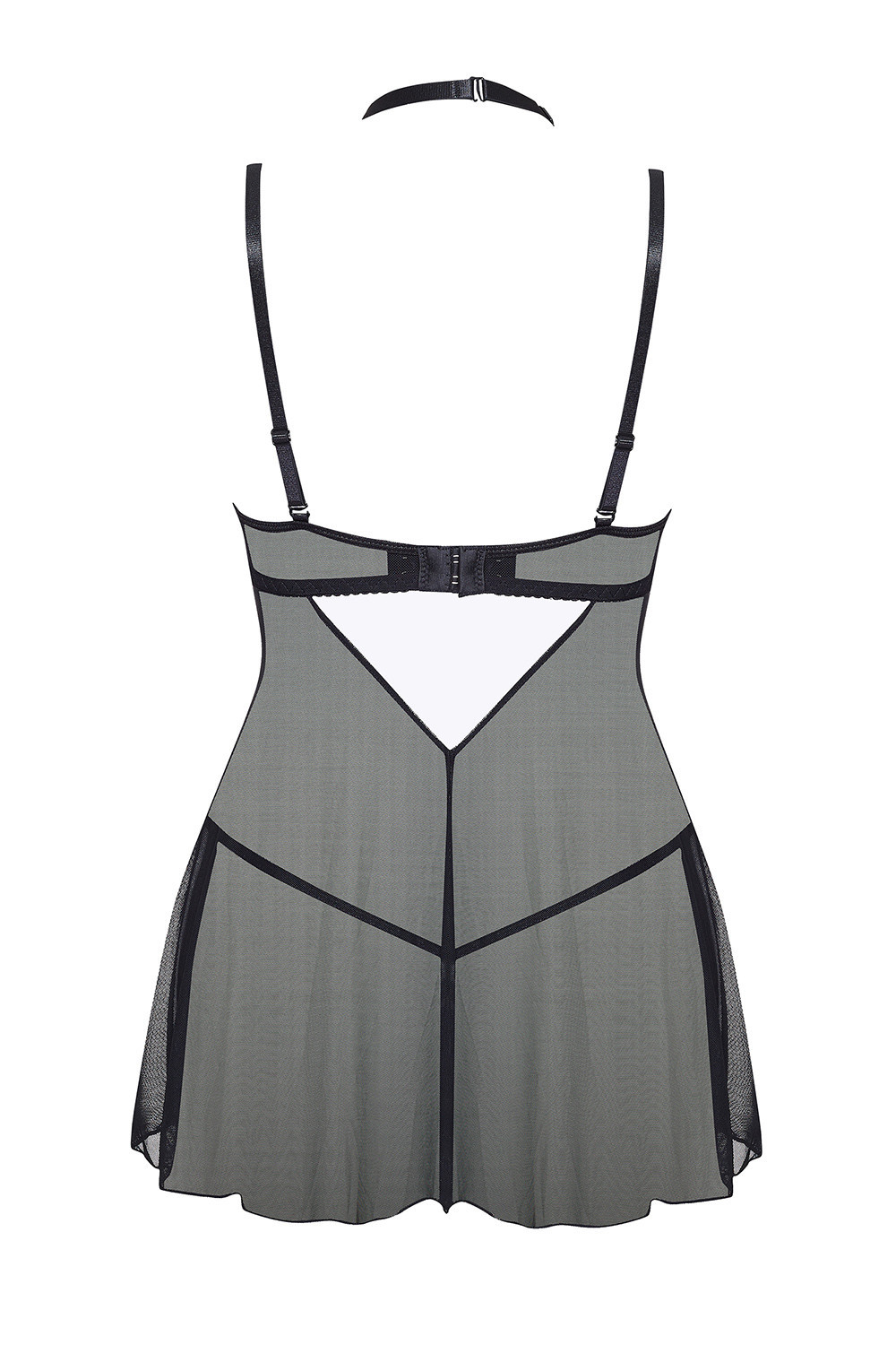 Noční košile značky Beauty Night, model Mariana chemise BN6640. Výrobek je vyroben z 88 % polyesteru, 12 % elastanu. Noční košile má zapínání na háčky a oka. Má drátky, které podpírají prsa a vhodně je tvarují. Místo zapínání: na zádech. Výrobek má nastavitelná ramínka. dámský výrobek. háčky na ramínka jsou kovové.