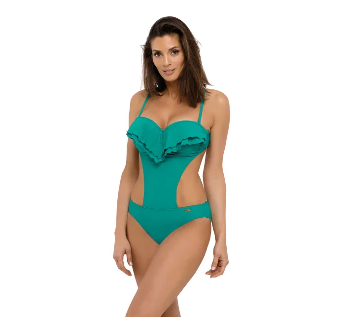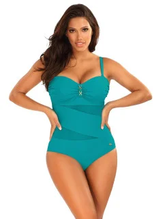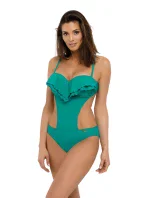 Jedná se o jednodílné plavky ve stylu monokini s vykrojenými boky, které jim dodávají moderní nádech. Vrchní díl plavek tvoří sexy push-up a přesně tvarované košíčky, vyztužené speciální pěnou, se zabudovanou a neodnímatelnou push-up výplní (push-up je v každé velikosti plavek). Střih pozvedá a zvětšuje prsa, vytváří sexy dekolt, zdobený éterickým volánkem. A to není vše. Plavky jsou vyrobeny z italské elastické látky, jsou hladké, pohodlné, zavazují se na zádech a mají zcela odepínací ramínka. Šťavnaté barvy na výběr ve více než deseti variantách - vyberte si je ve své oblíbené barvě. Složení: 80 % polyamid, 20 % elastan.