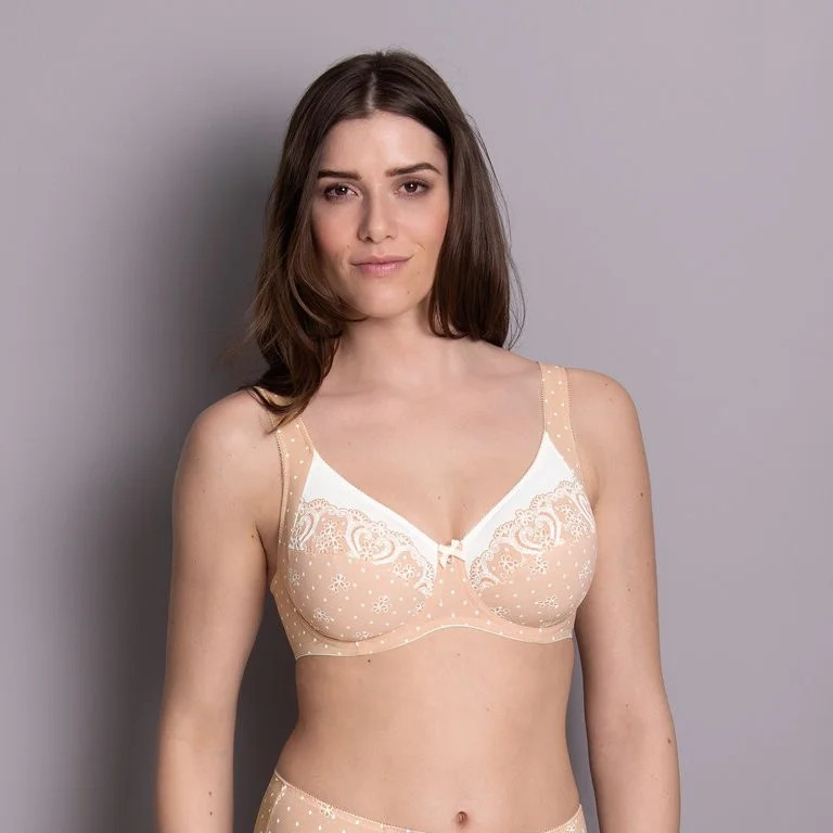 Měkká podprsenka s kosticemi Anita dokonale podepře i velká prsa. Odlehčuje oblast krku a ramen a zajišťuje nejvyšší komfort nošení. Vyrobeno z měkkého a prodyšného mikrovlákna s potiskem imitujícím krajku.
