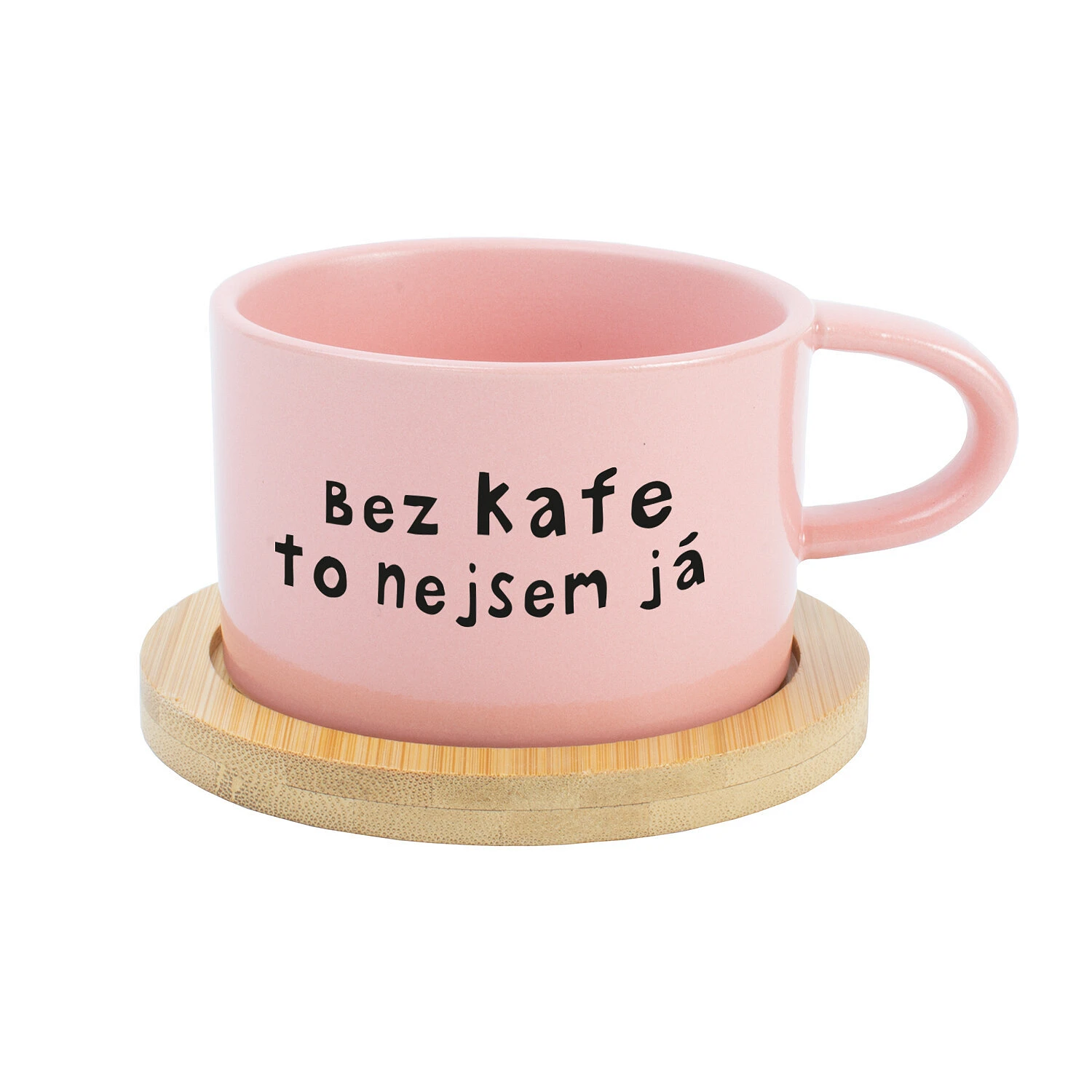 Keramický hrneček s bambusovým podtáckem – Bez kafe to nejsem já