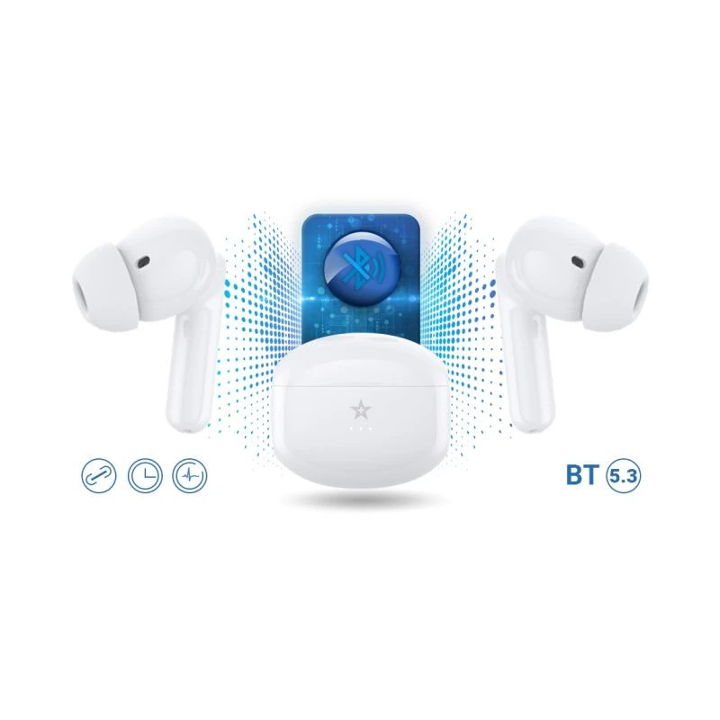Sluchátka s technologií ENC, která zajišťuje čistší zvuk v hlučném prostředí,poskytují lepší kvalitu hovorů a potlačení okolního hluku, což je velmi užitečné při práci na dálku a účasti na videokonferencích.