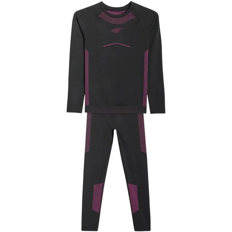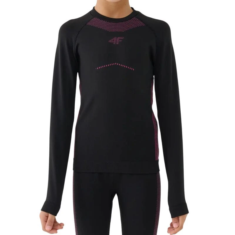 Bielizna bezszwowa dla dziewczynki 4F F250 głęboka czerń 4FJWAW25USEAF250 20S Bielizna dla dziewczynki 4F zapewnia wysokie właściwości termoizolacyjne i komfort cieplny zarówno podczas długich godzin spędzonych na stoku, jak i ulubionych codziennych aktywności w zimne dni. Dane techniczne:· Materiał główny: 63% poliester, 32% poliamid, 5% elastan · Krój: kompresyjny, który mocno przylega do sylwetki· Standardowy fason koszulki sięgający do bioder· Raglanowe rękawy· Legginsy ze średnim stanem i długimi nogawkami· Wykonana z materiału syntetycznego, który zapewnia trwałość i jest łatwy w pielęgnacji· Bezszwowa konstrukcja, sprawdzi się jako pierwsza warstwa odzieży (first layer)· Termoaktywna - utrzymuje optymalną temperaturę ciała · Szybkoschnące wykończenie - odprowadzanie wilgoci i świeżość · Okrągły dekolt koszulki· Technologia 4FSkin zapewnia idealne dopasowanie i swobodę ruchów· Komplet: góra + dół
