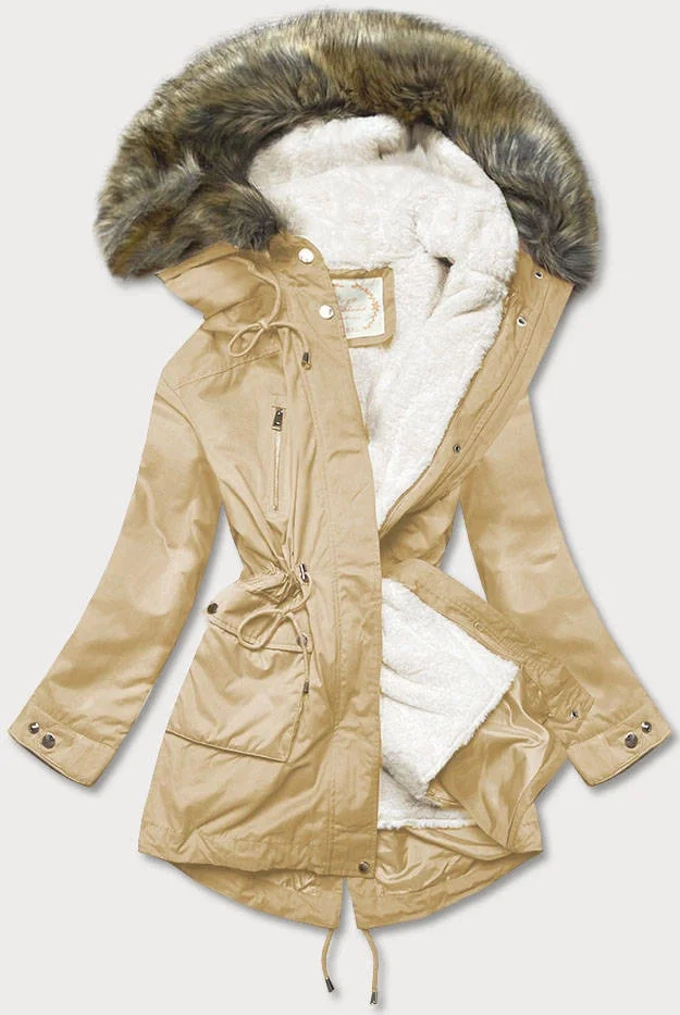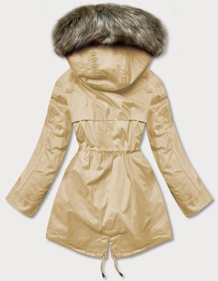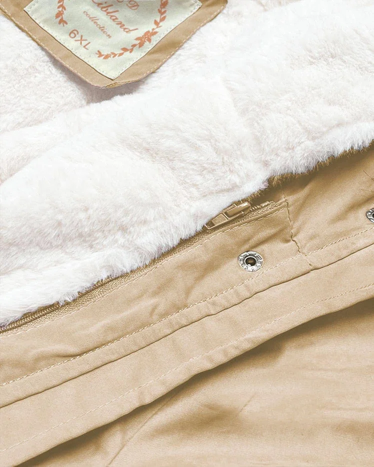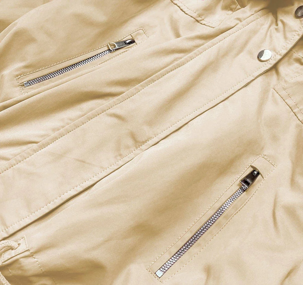 Béžová bunda parka s kapucí a s odepínací podšívkou (7619big)