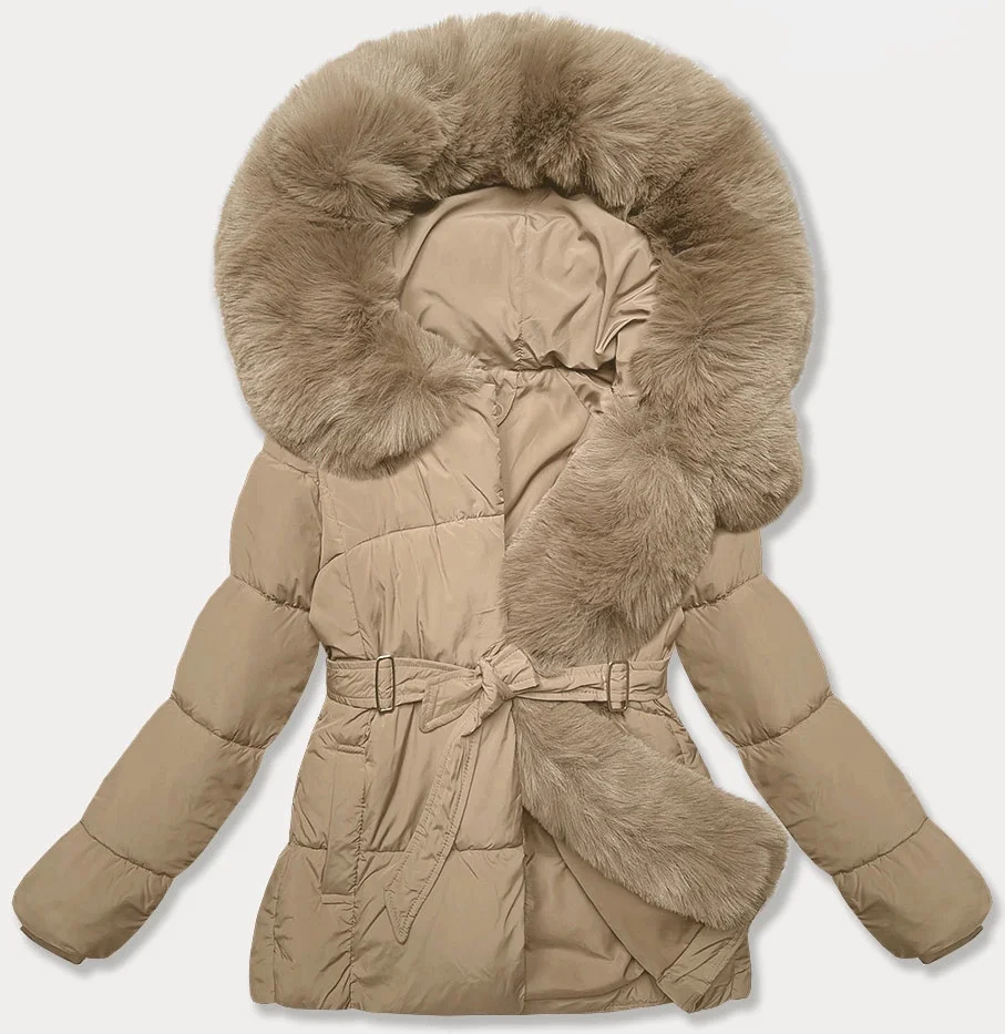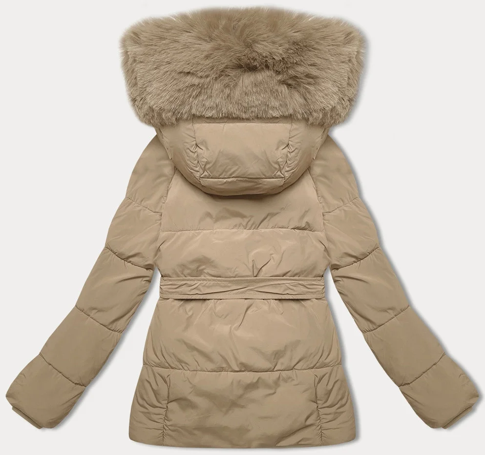 Béžová bunda pro přechodné období s páskem J Style (16M9183-62)