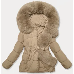 Béžová bunda pro přechodné období s páskem model 21248567 - J.STYLE