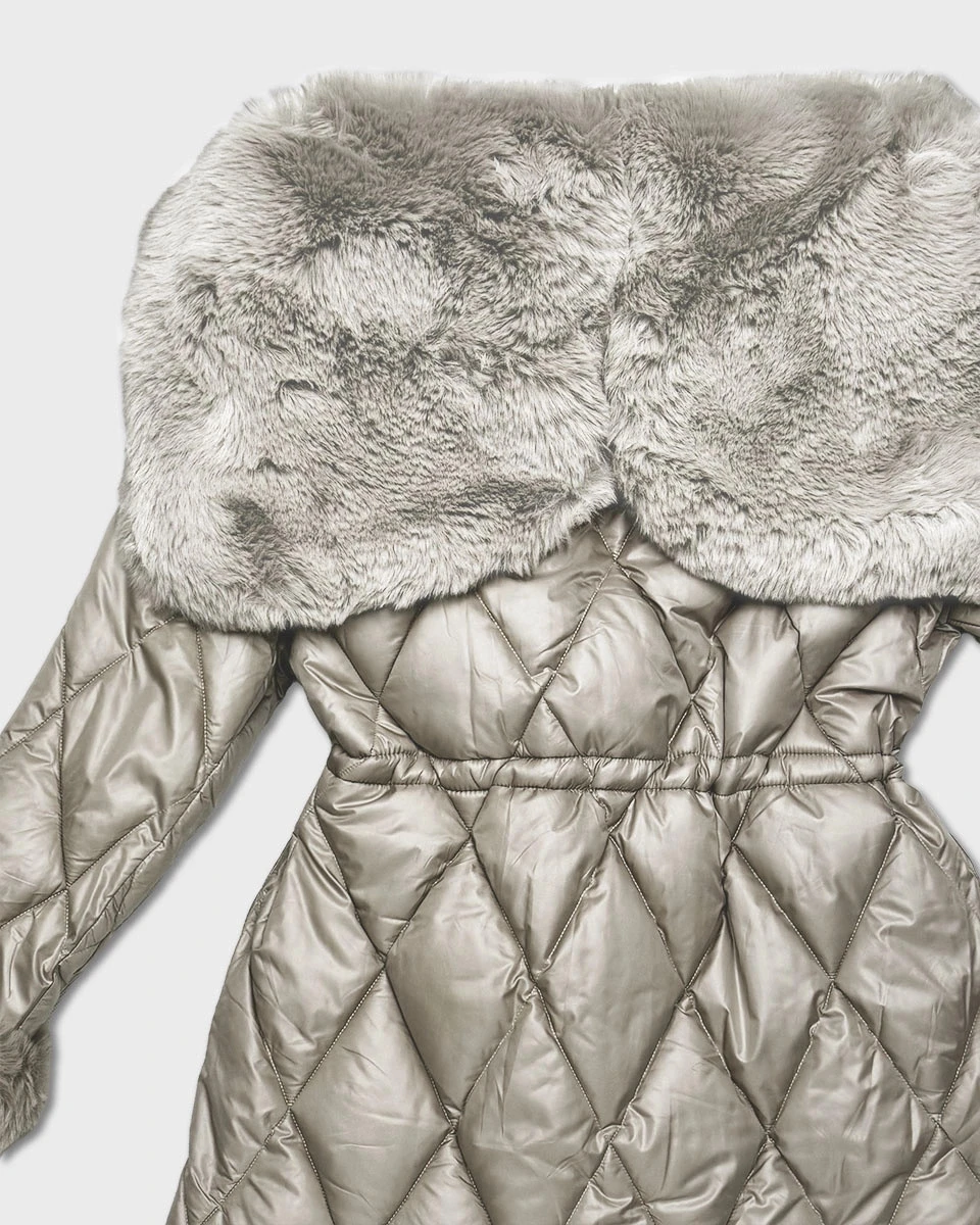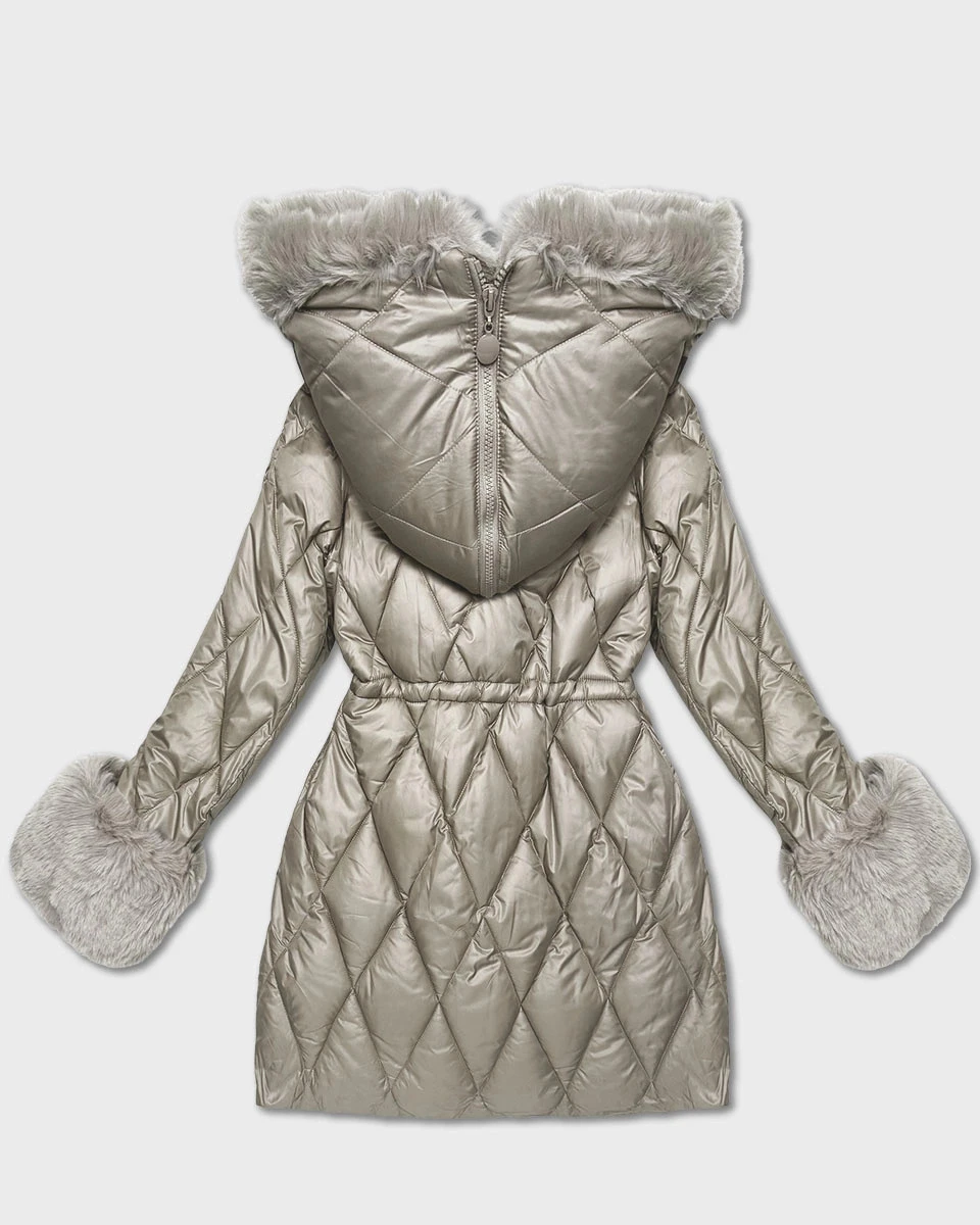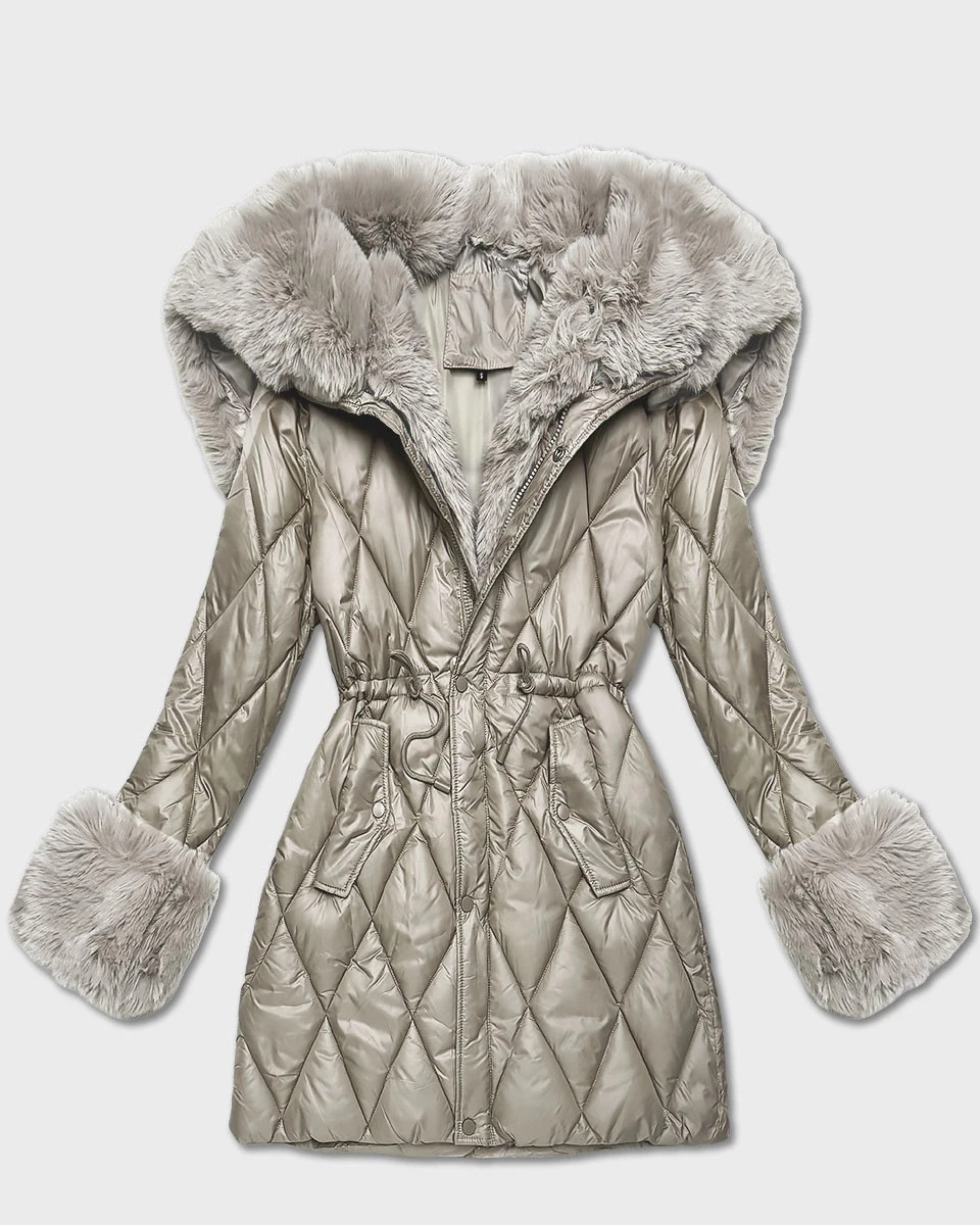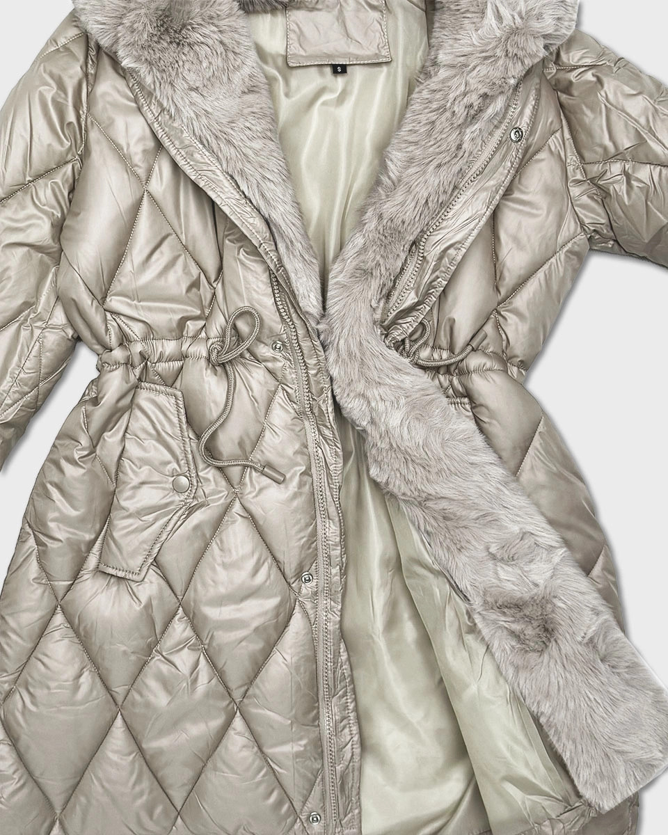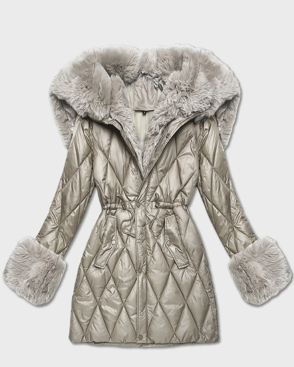 Béžová bunda s kožešinovou kapucí, model 21757959 - HONEY WINTER