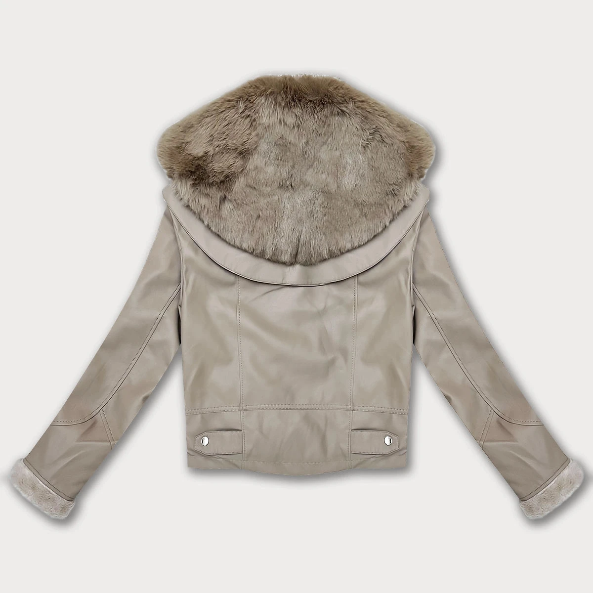 Přidání recenze k Béžová bunda z ekologické kůže s kožešinovým límcem Glakate (LU98091#)