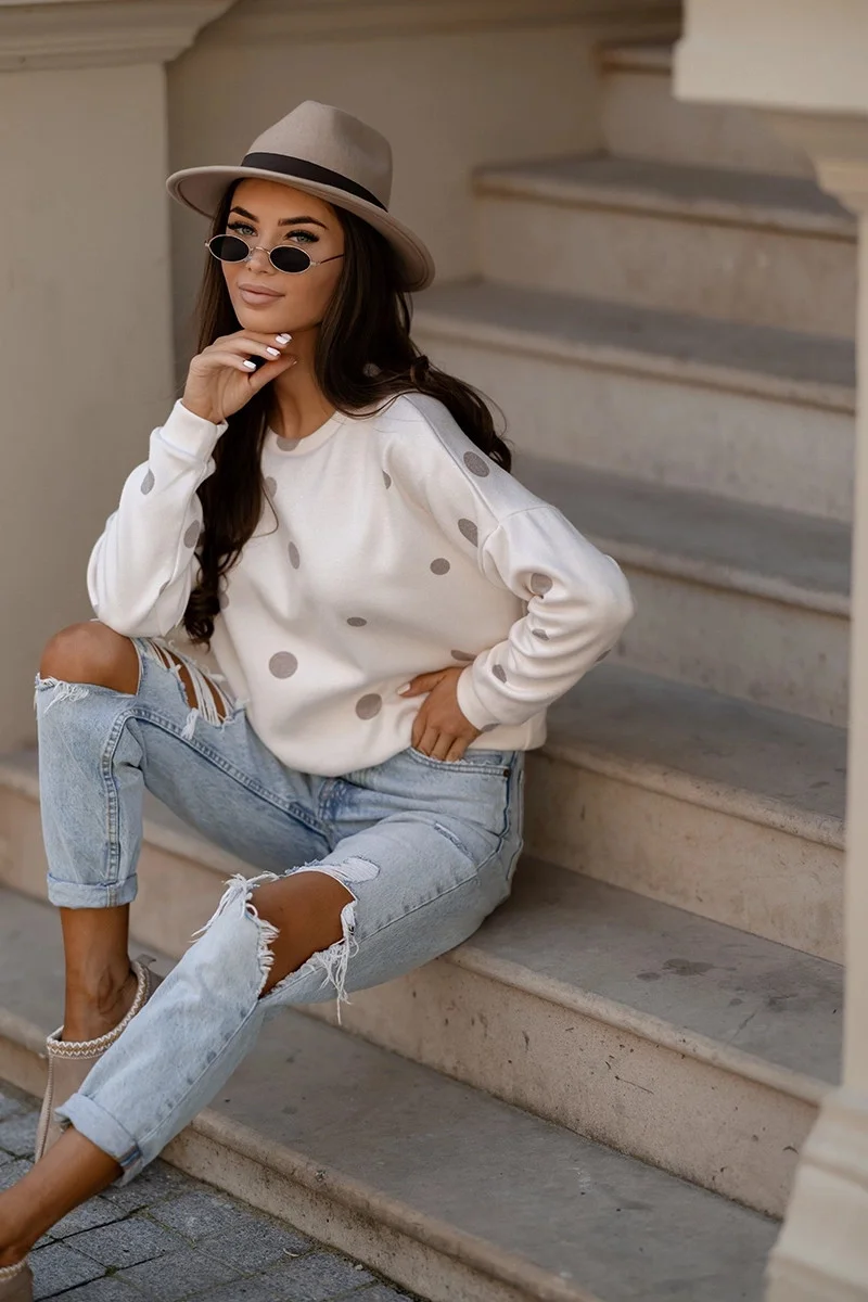 Béžová dámská bavlněná mikina s puntíky model 20524339 - Moon