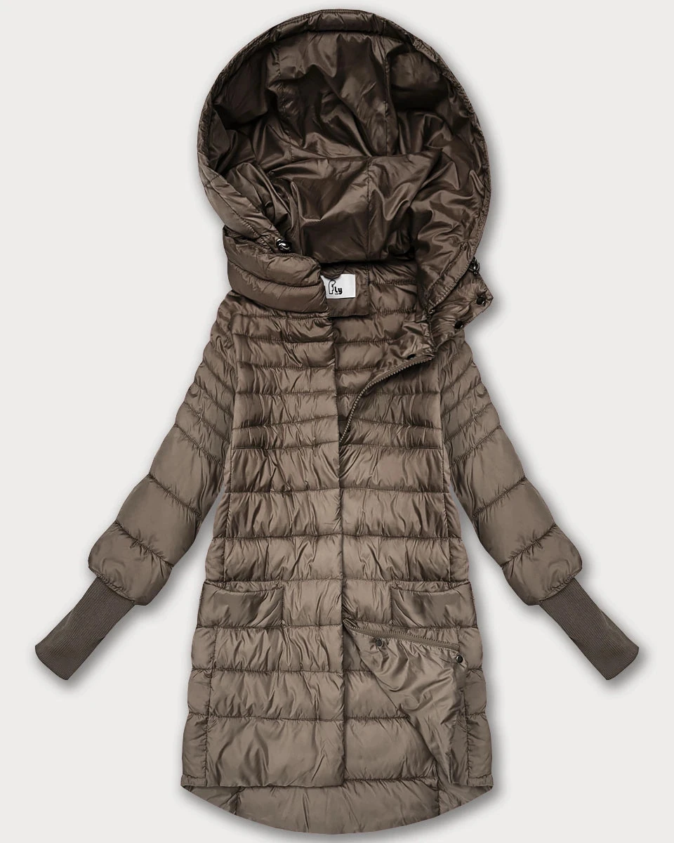 Béžová dámská bunda pro přechodné období s stahovacími lemy model 21389944 - FLY MODA