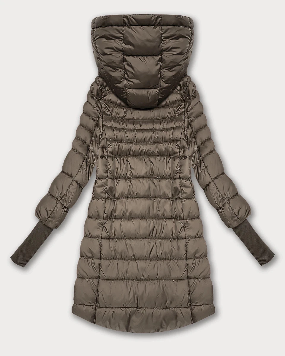 Bunda je zateplená vrstvou syntetické péřové výplně, má dvě kapsy bez zapínání a zapíná se dvousměrným zipem a panelem s patentkami. Rukávy jsou olemované úpletovými stahovacími lemy. Zadní část bundy je o něco delší než přední. Model má délku k bokům.
