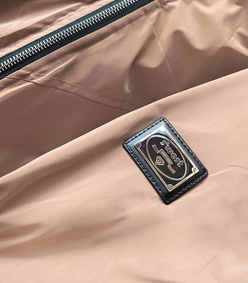 Bunda je lehce zateplená, má dvě kapsy a zapíná se dvoustranným zipem. Model má kapuci, kterou není možné odepnout. Rukávy jsou olemované gumičkami. V pase modelu jsou stahující šňůrky a vzadu je na úrovni pasu guma. Bunda má délku do poloviny stehen.