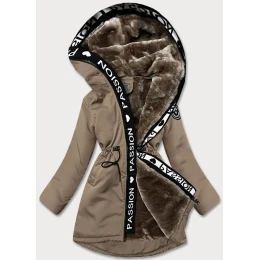 Béžová dámská bunda s kožešinovou podšívkou (B8115-12)
