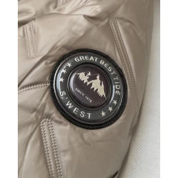 Bunda má jednoduchý střih, je lehce zateplená syntetickou péřovou výplní, má dvě kapsy a zapíná se zipem. Model má kapuci, kterou není možné odepnout. Ozdobné prvky mají zlatou barvu. Bunda má délku k bokům.