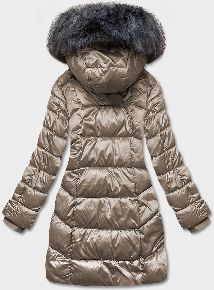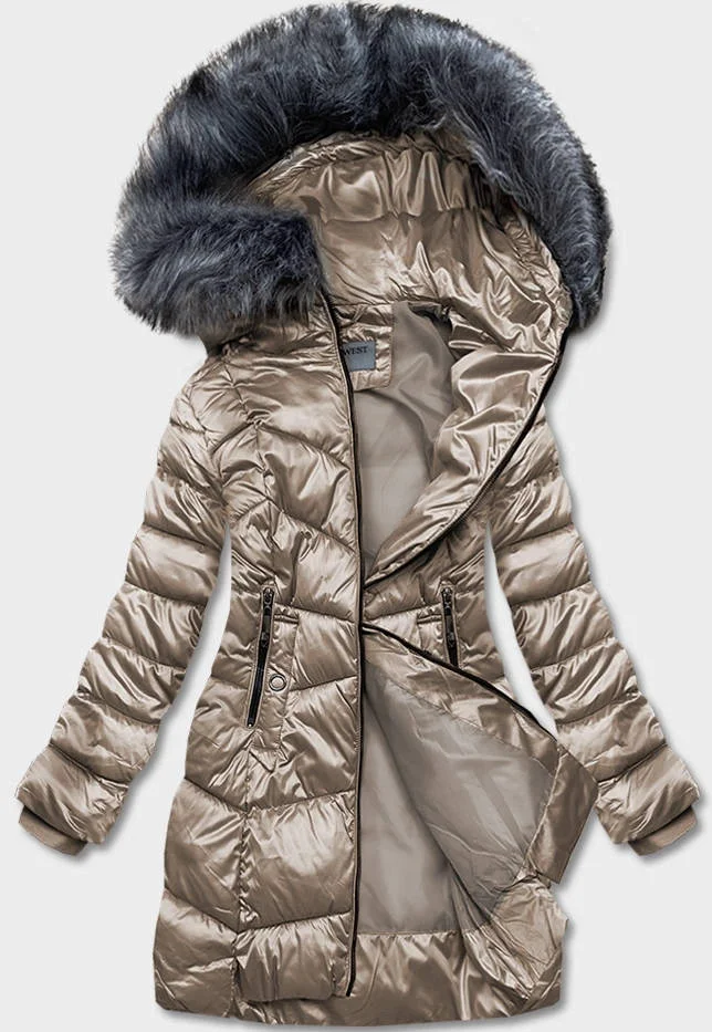 Béžová dámská metalická zimní bunda (B8072-12)