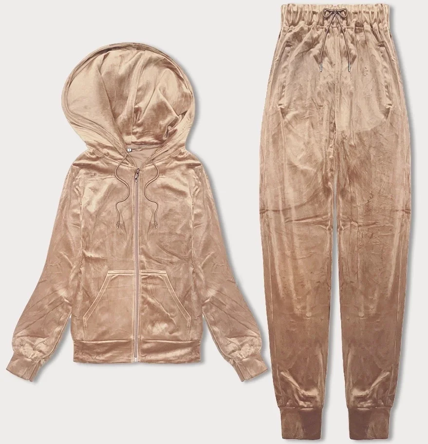 Béžová dámská velurová souprava s rozepínací mikinou (8C1176-159)