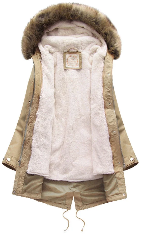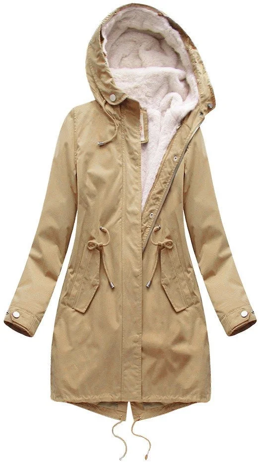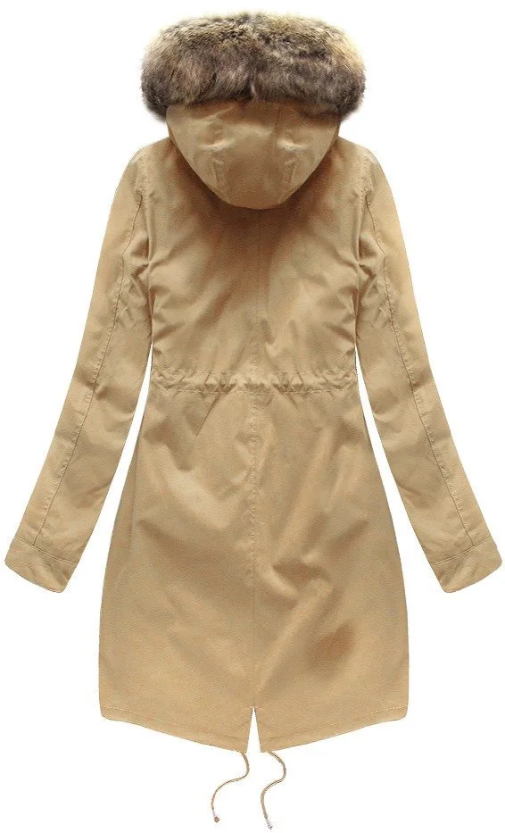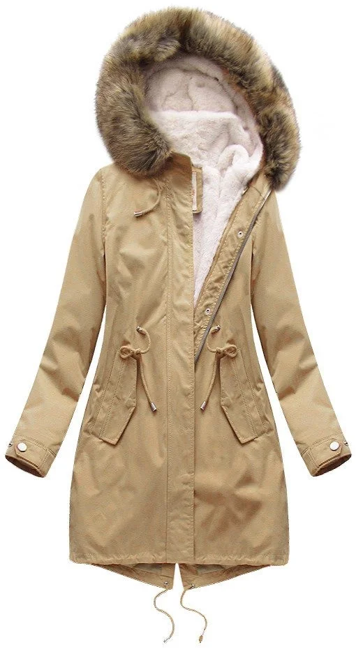 Béžová dámská zimní bunda parka s odepínací podšívkou a kapucí (7626BIG)