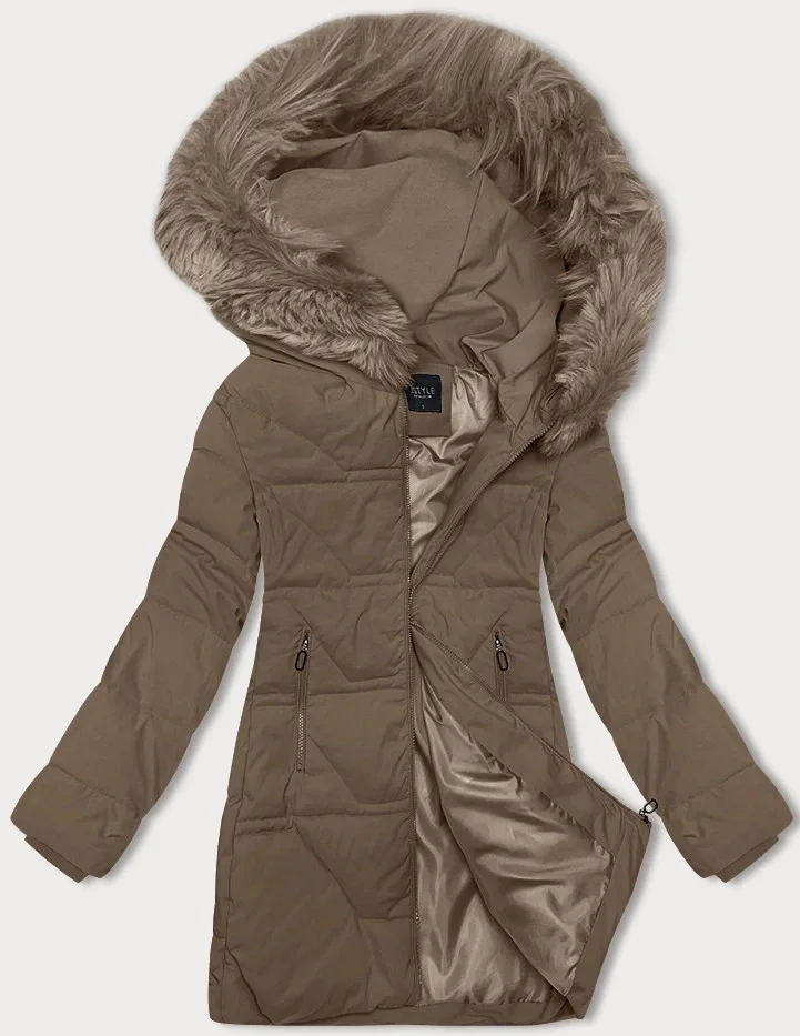 Béžová dámská zimní bunda s kapucí model 21246933 - J.STYLE