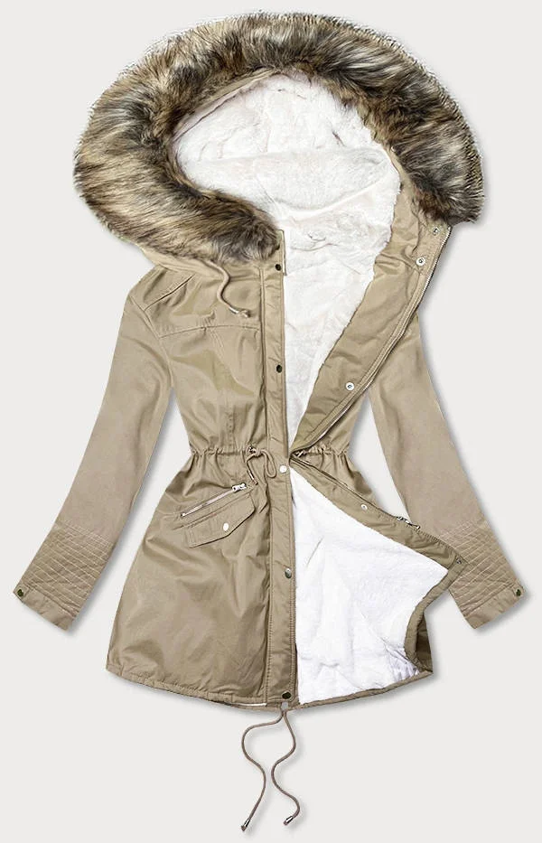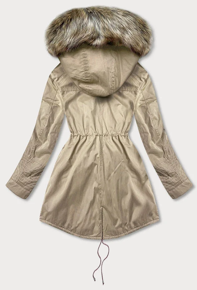 Přidání recenze k Béžová dámská zimní bunda typu parka s mechovitou kožešinovou podšívkou a s kapucí (7602BIG)