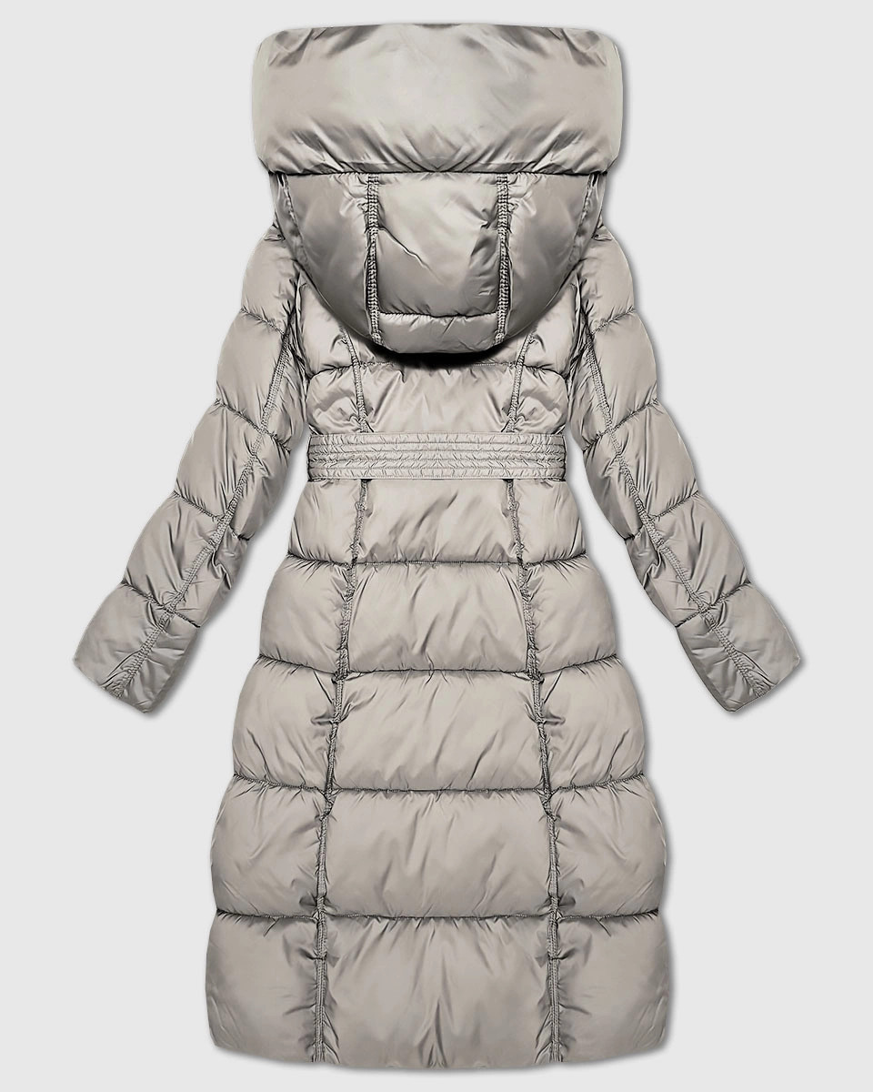 Béžová dlouhá a hrubší zimní bunda s opaskem Minority (P3-6033-62)