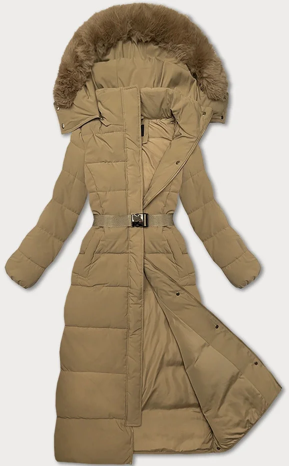 Béžová dlouhá hrubší bunda-kabát s opaskem (WD202306)