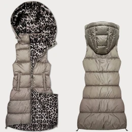 Béžová hrubší oboustranná vesta s panteřím vzorem a s odepínací kapucí model 21310496 - HONEY WINTER