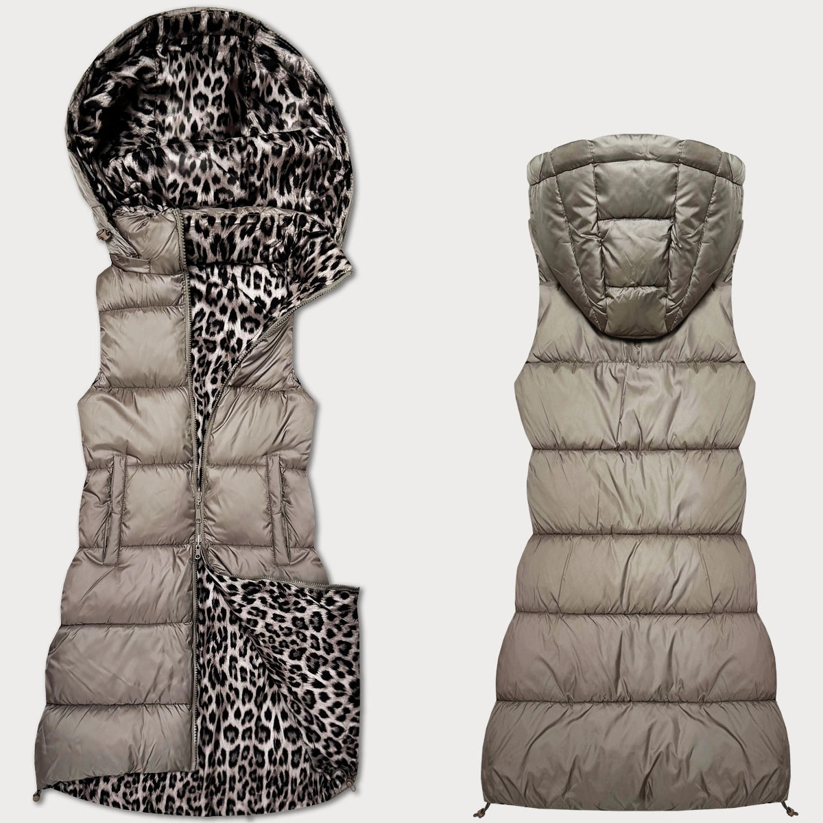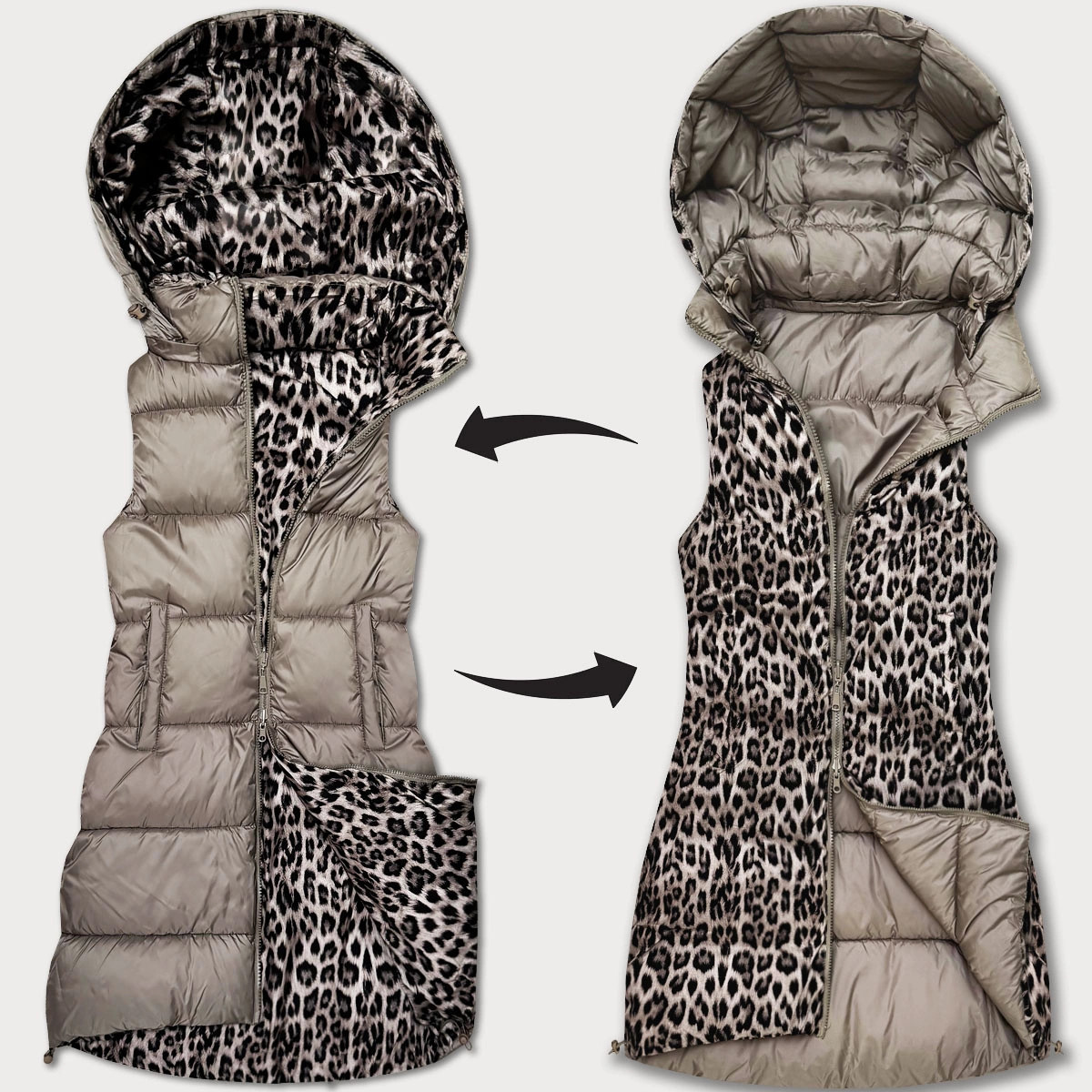 Béžová hrubší oboustranná vesta s panteřím vzorem a s odepínací kapucí (T5-2602#-62)