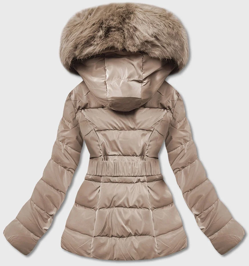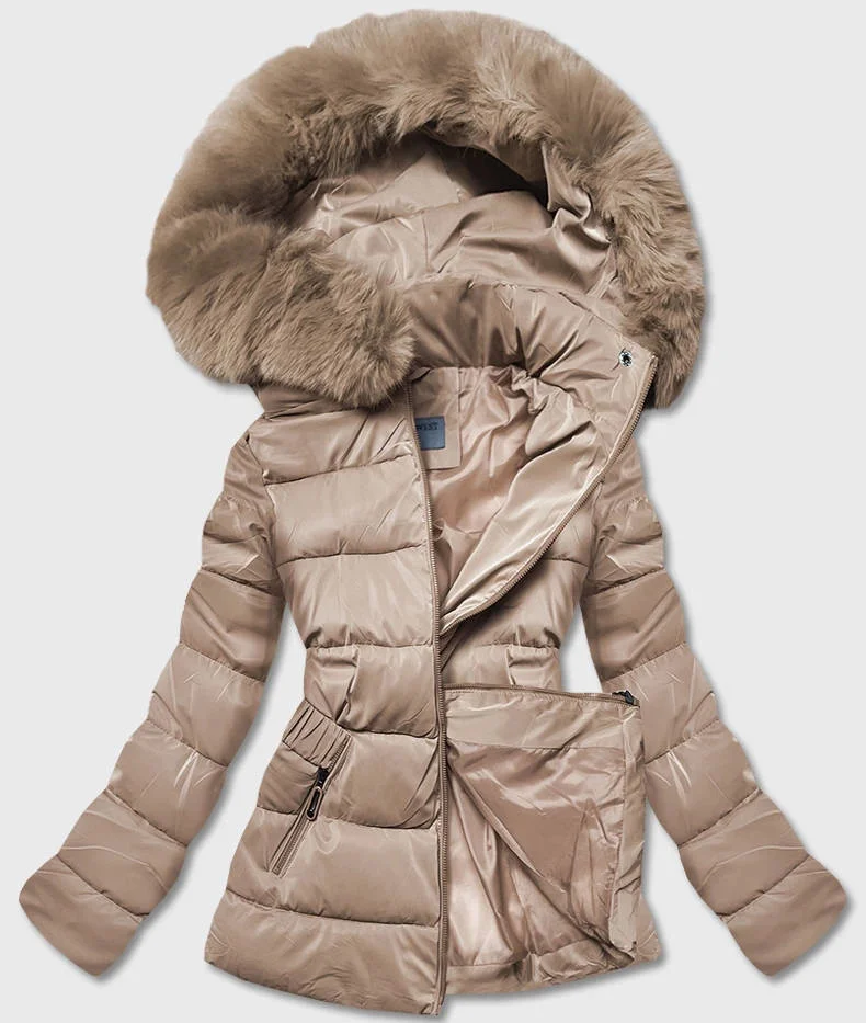 Béžová krátká lesklá dámská bunda (B8090-46)