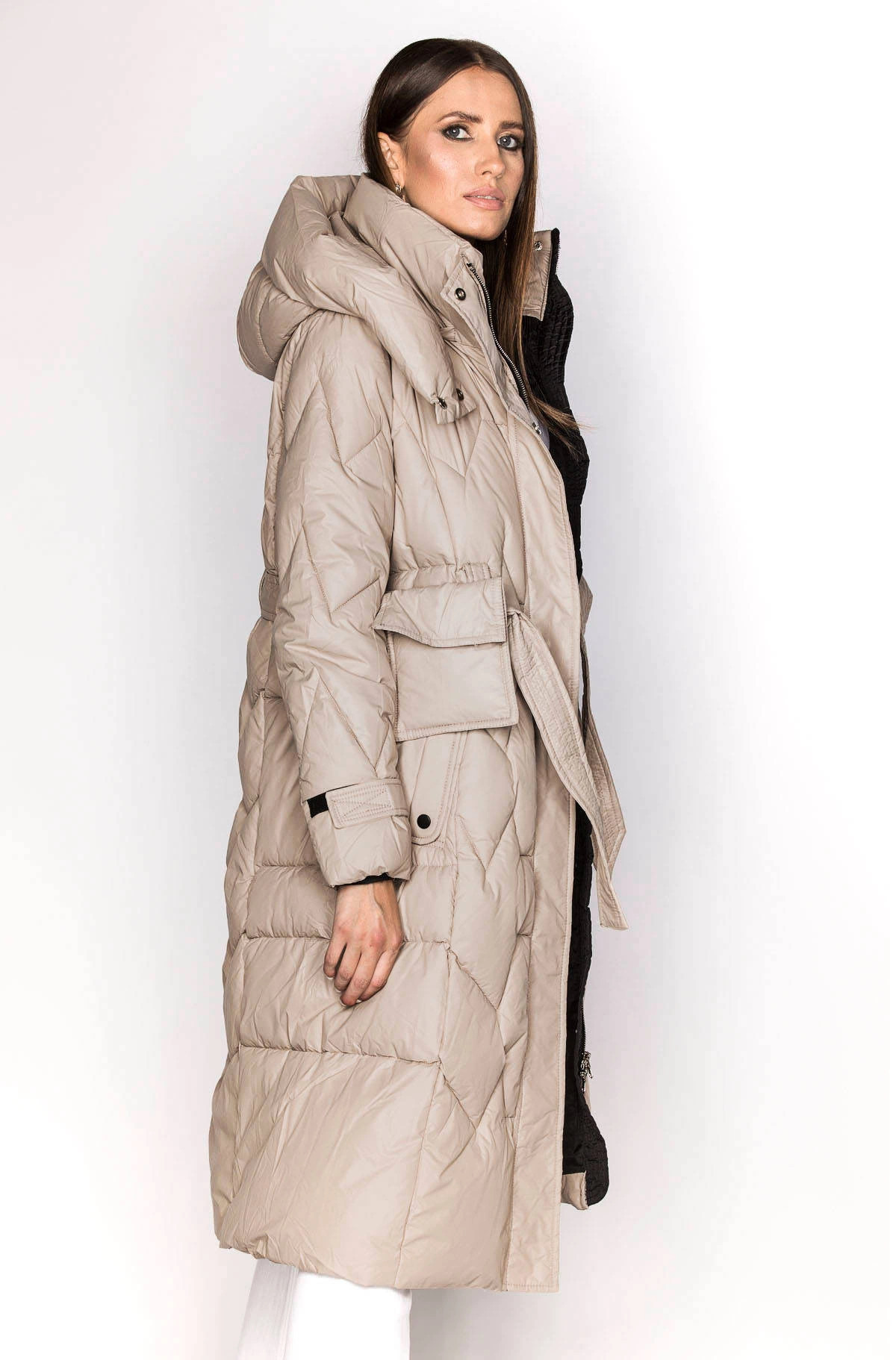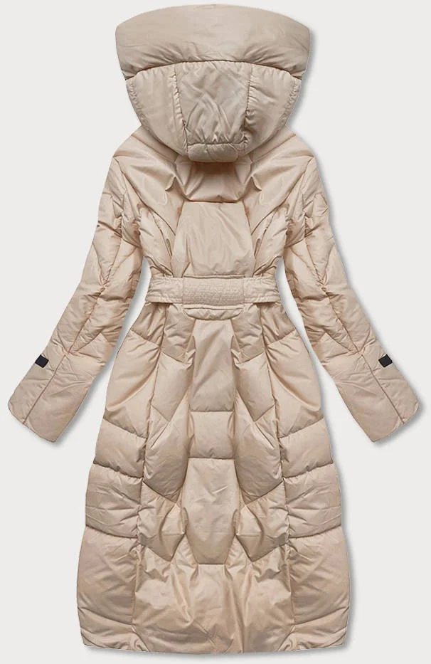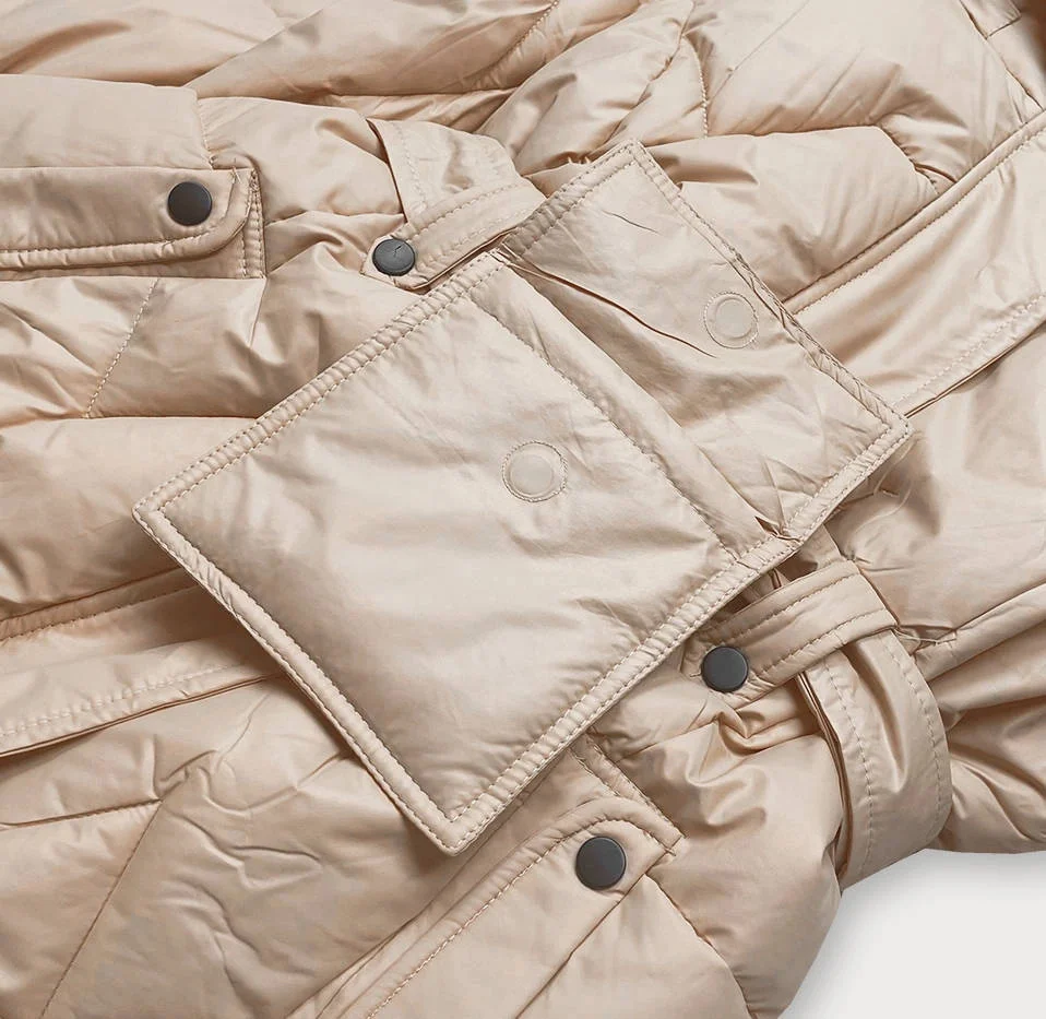 Béžová péřová bunda se stojáčkem a kapucí (ag2-j82)