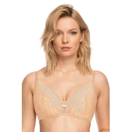 Biustonosz Clarisa Beżowy od MEFEMI by Nipplex to elegancki i komfortowy model bez fiszbin, stworzony z myślą o kobietach ceniących wygodę i subtelny styl. Delikatna koronka nadaje mu romantyczny charakter, a formowane miseczki perfekcyjnie podtrzymują biust, zapewniając naturalny kształt. Regulowane ramiączka umożliwiają dopasowanie do sylwetki, co gwarantuje komfort przez cały dzień. Wykonany z wysokiej jakości materiałów, takich jak poliamid, poliester, elastan i bawełna, jest miękki w dotyku oraz trwały. Zapięcie na haftkę zapewnia stabilność i pewność noszenia. Clarisa Beżowy to doskonały wybór na co dzień i na wyjątkowe okazje.
