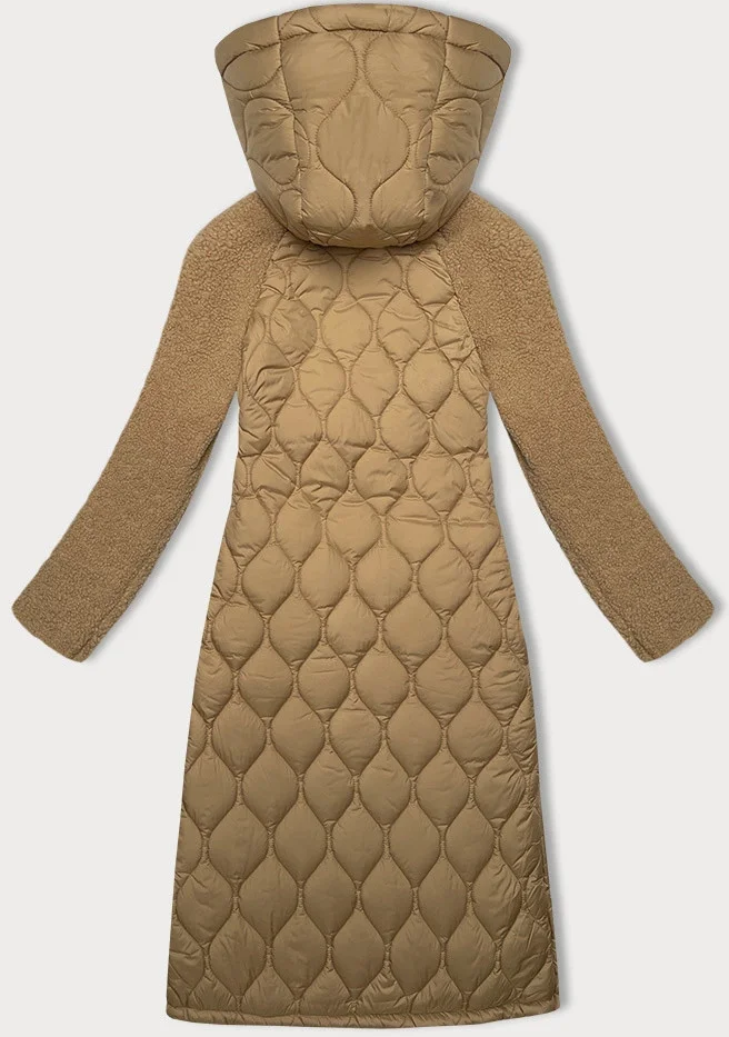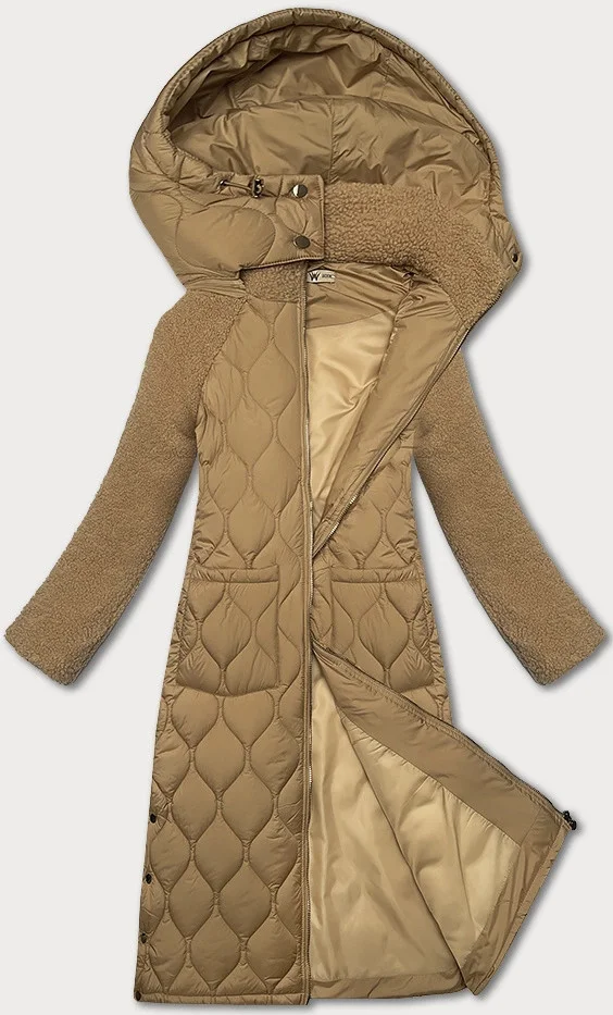 Béžová prošívaná dámská bunda pro přechodné období s ke kolenům model 20755284 - WAY MODE
