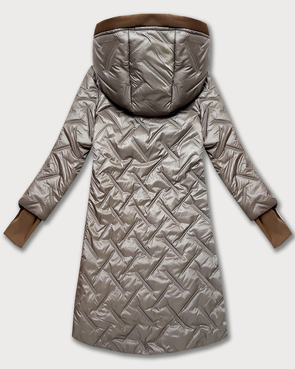 Béžová prošívaná dámská bunda s ozdobnými vsadkami model 21308853 - HONEY WINTER