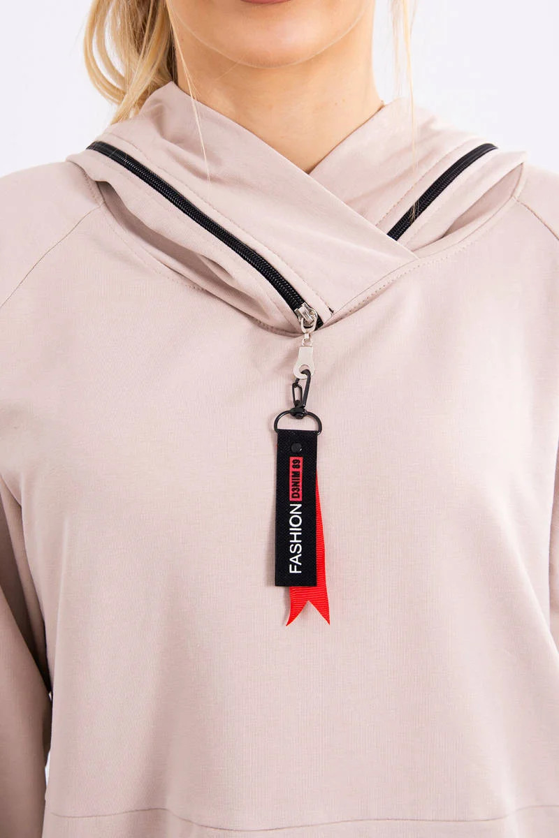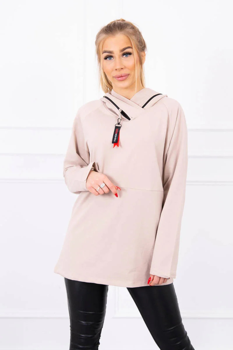 Béžová tunika na zip s kapucí Oversize