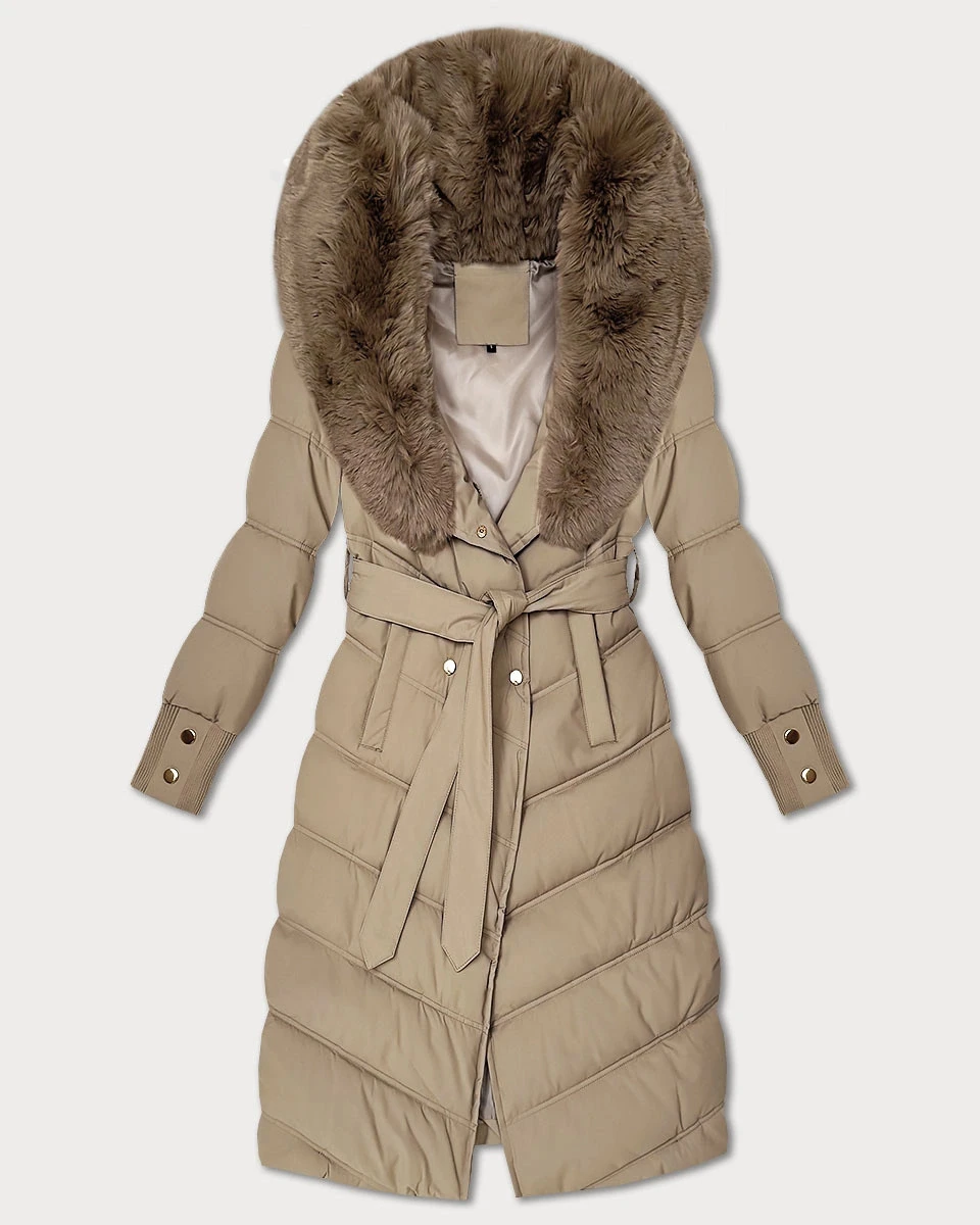 Béžová zimní bunda s kožešinovým límcem S'west (R8500-12)