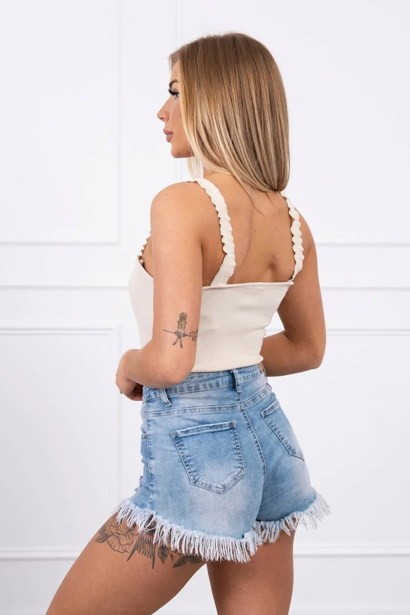 Představujeme vám tělovou halenku. Halenka má na ramínkách volánky. Halenka z žebrované tkaniny. Velmi módní a stylové. Velikost je univerzální a vyhovuje dámám ve velikostech XS, S a M.