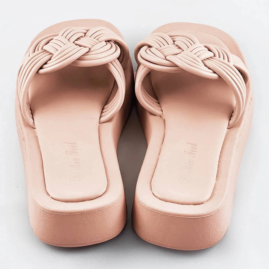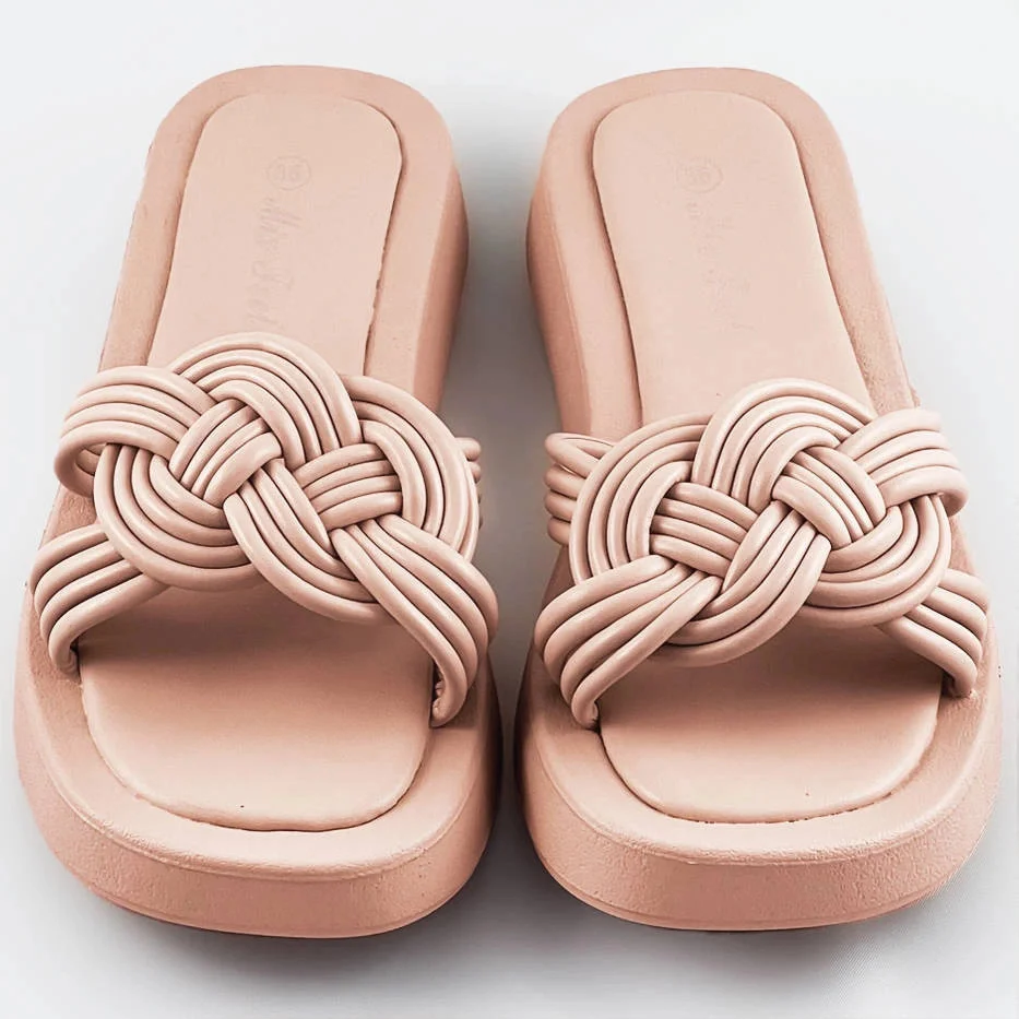 Béžové dámské pantofle s plochou podrážkou (CM-49)