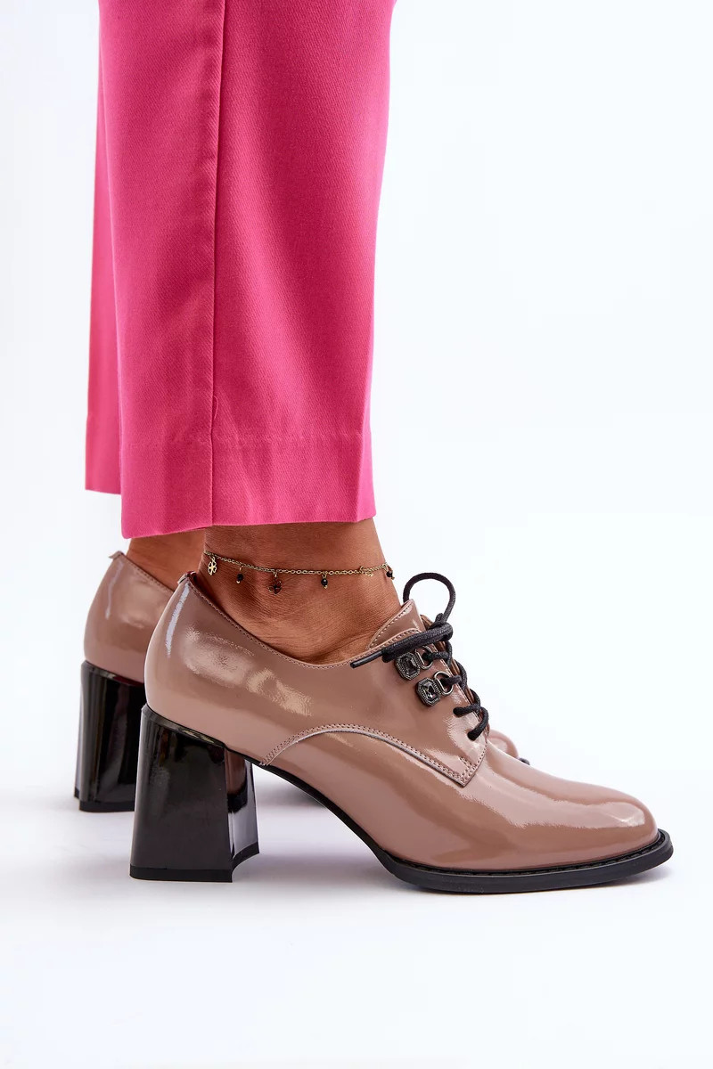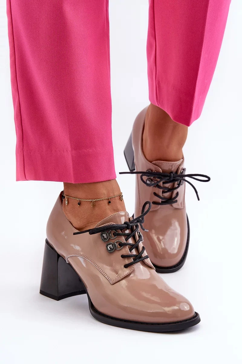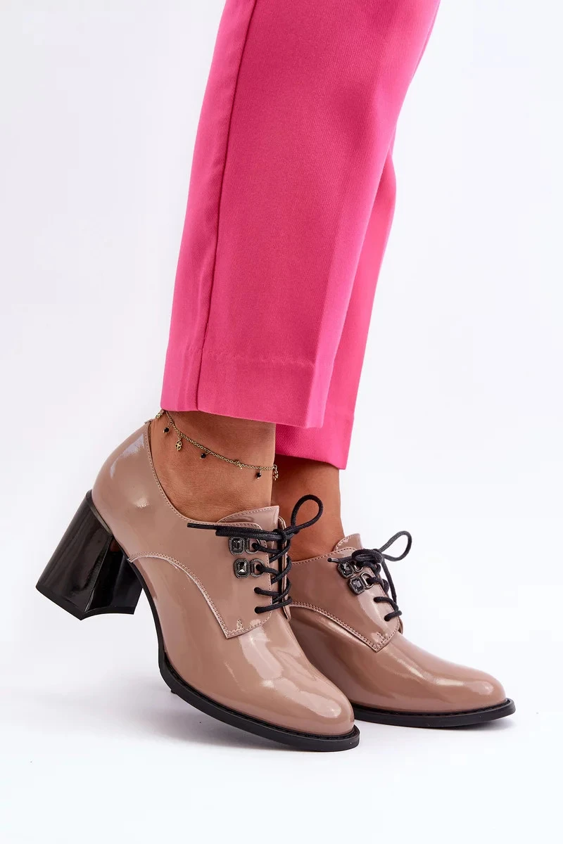 Béžové dámské patentované boty na vysokém podpatku Nelione