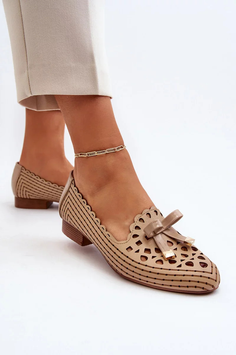 Béžové dámské prolamované baleríny s mašlí Nestavia