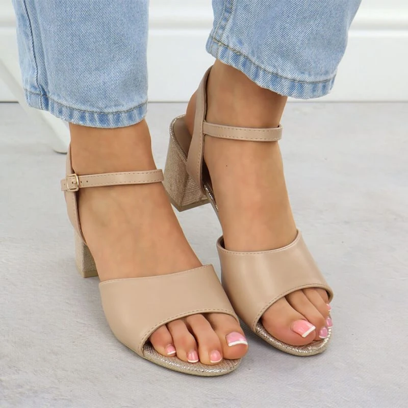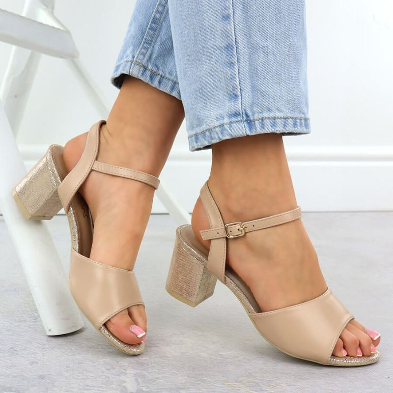 Béžové dámské sandály na jehlovém podpatku model 21904915 - VINCEZA