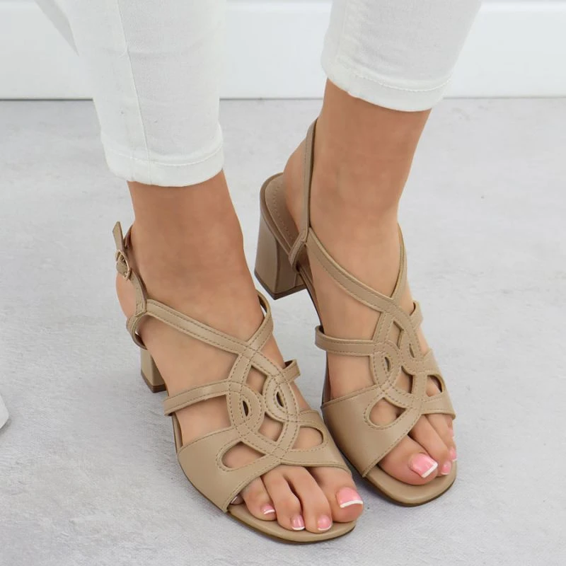 Béžové dámské sandály na jehlovém podpatku Sergio Leone SK884