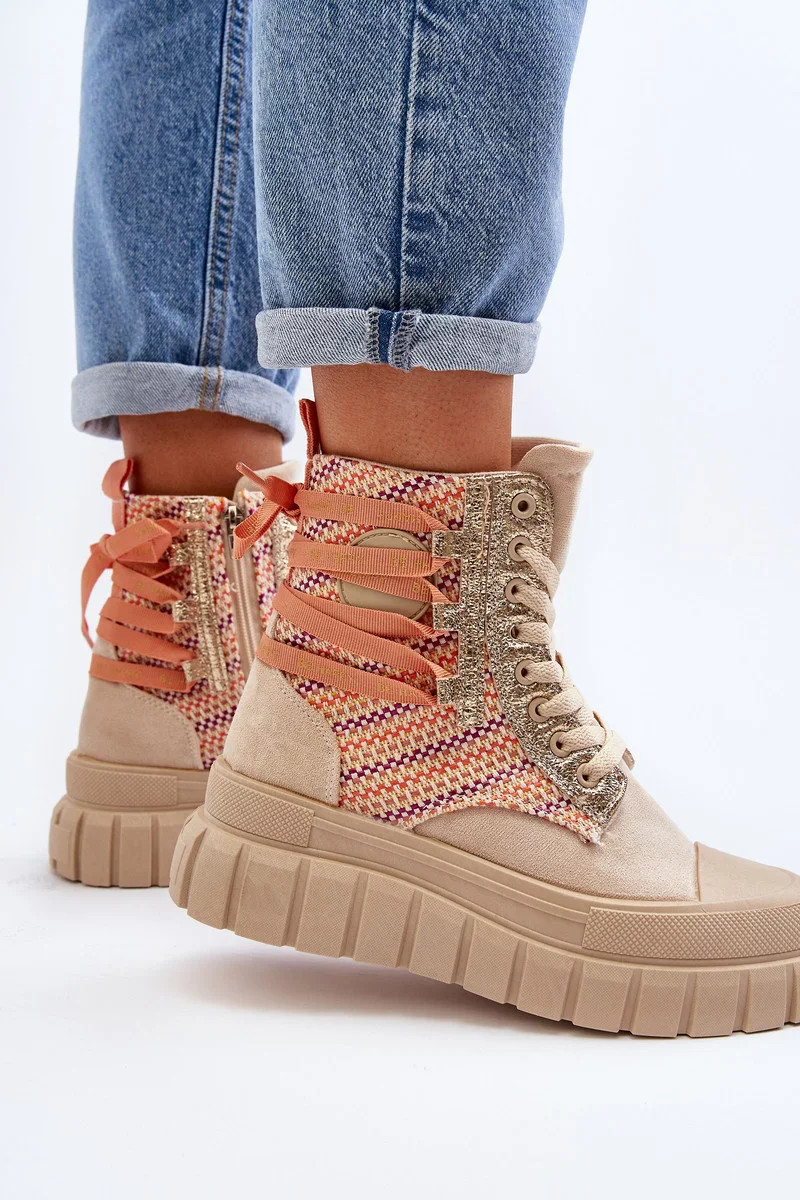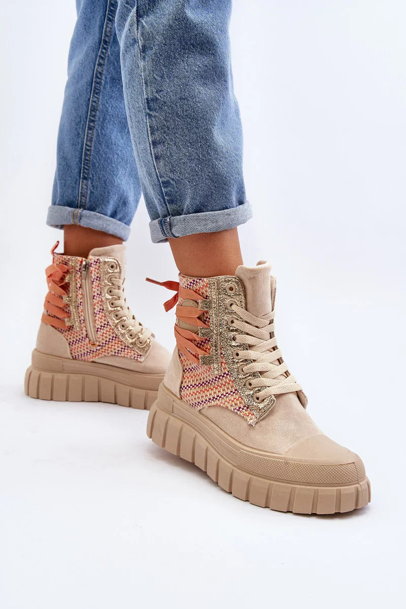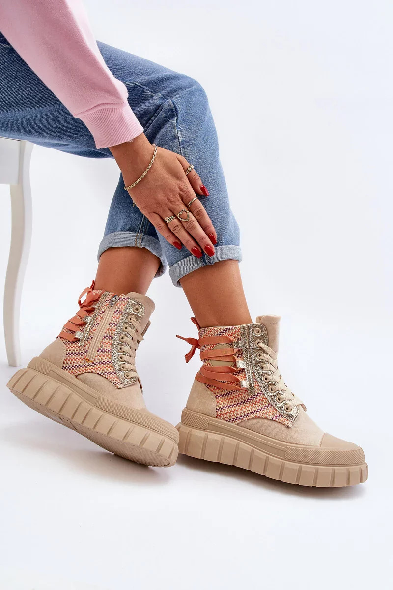 Béžové dámské vysoké tenisky na masivní platformě Kernia